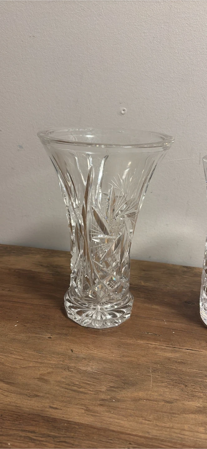 Vintage Set of 2 Pinwheel Crystal Vases