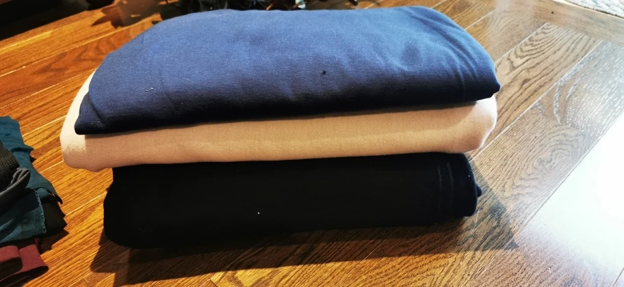 various fabrics in different colors and measurements.