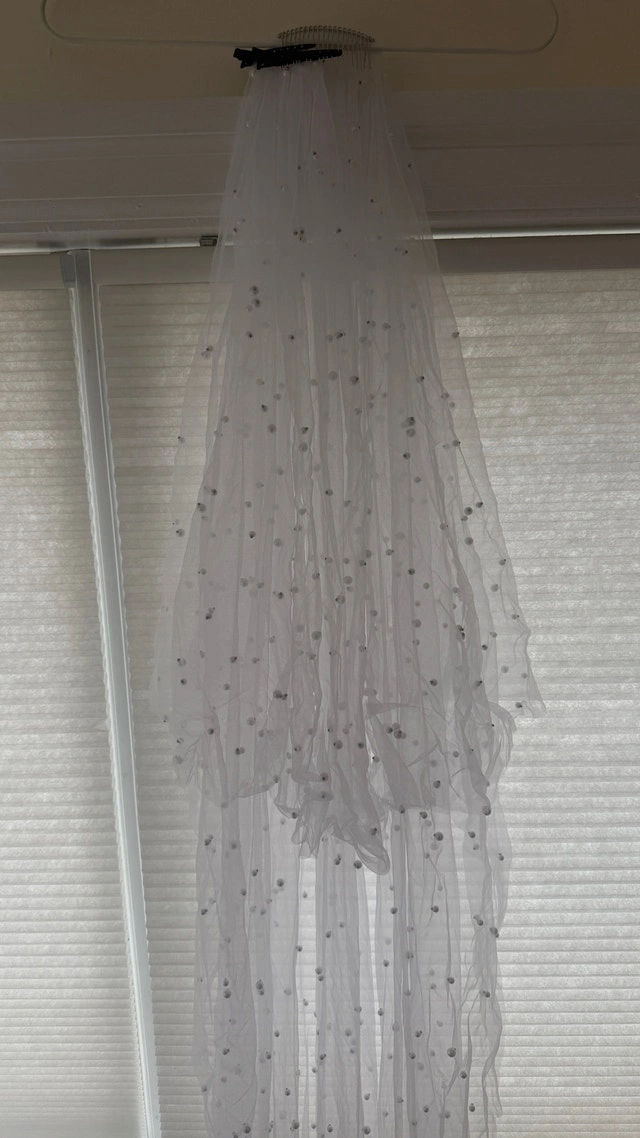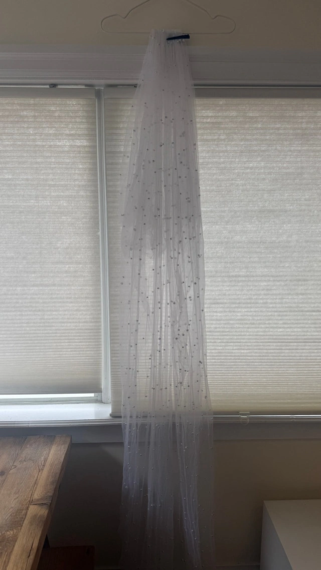 Gorgeous pearled chapel/floor veil with blusher and comb. Approx 220cm or 90”