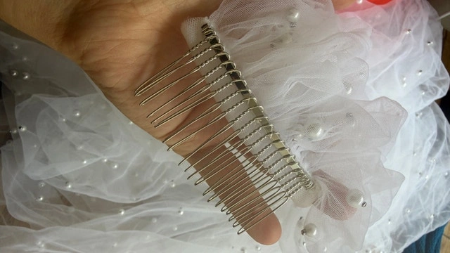 Veil was never worn as it didn’t match my dress. Like any other veil it will require steaming to remove crinkles.
