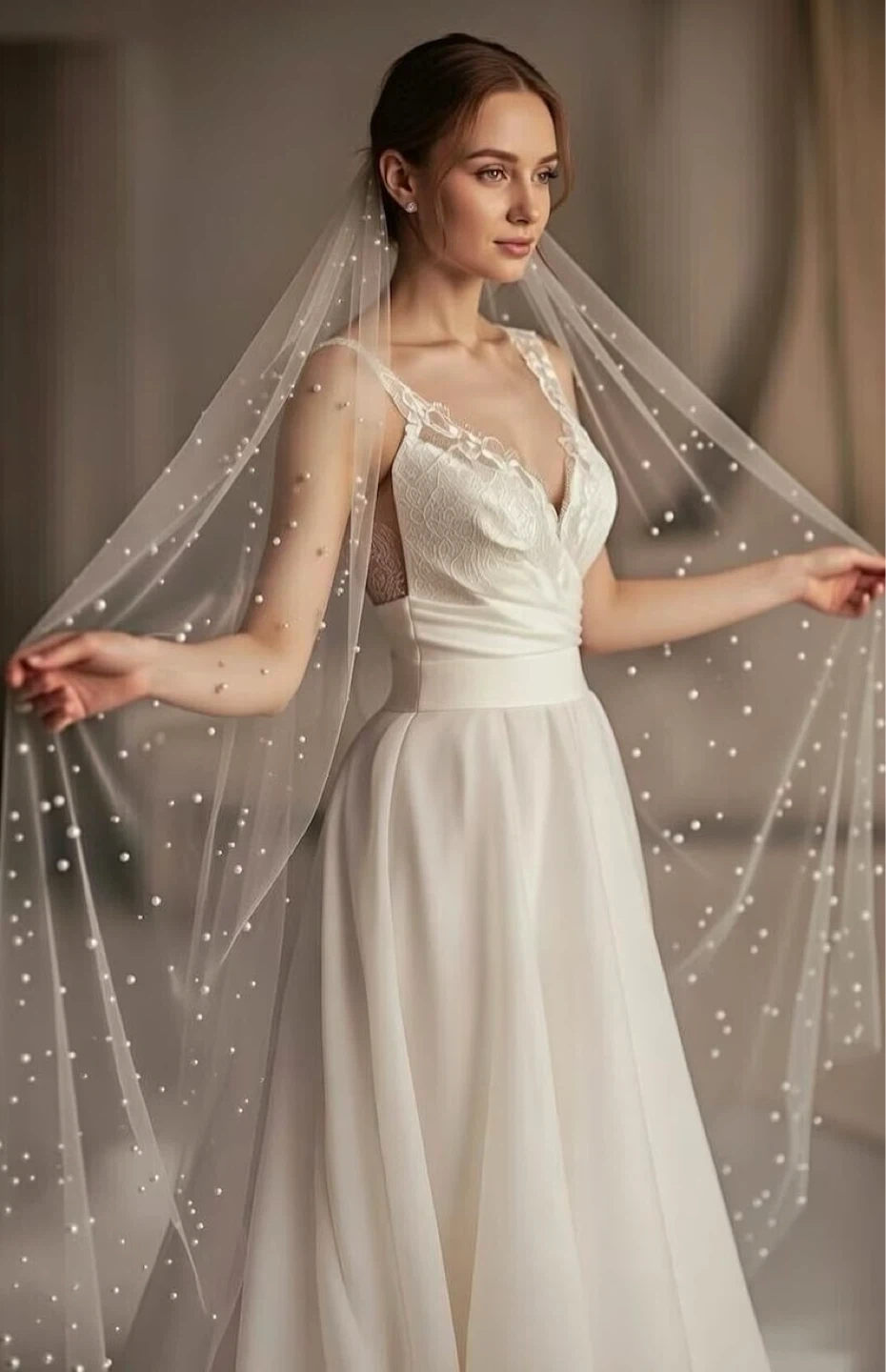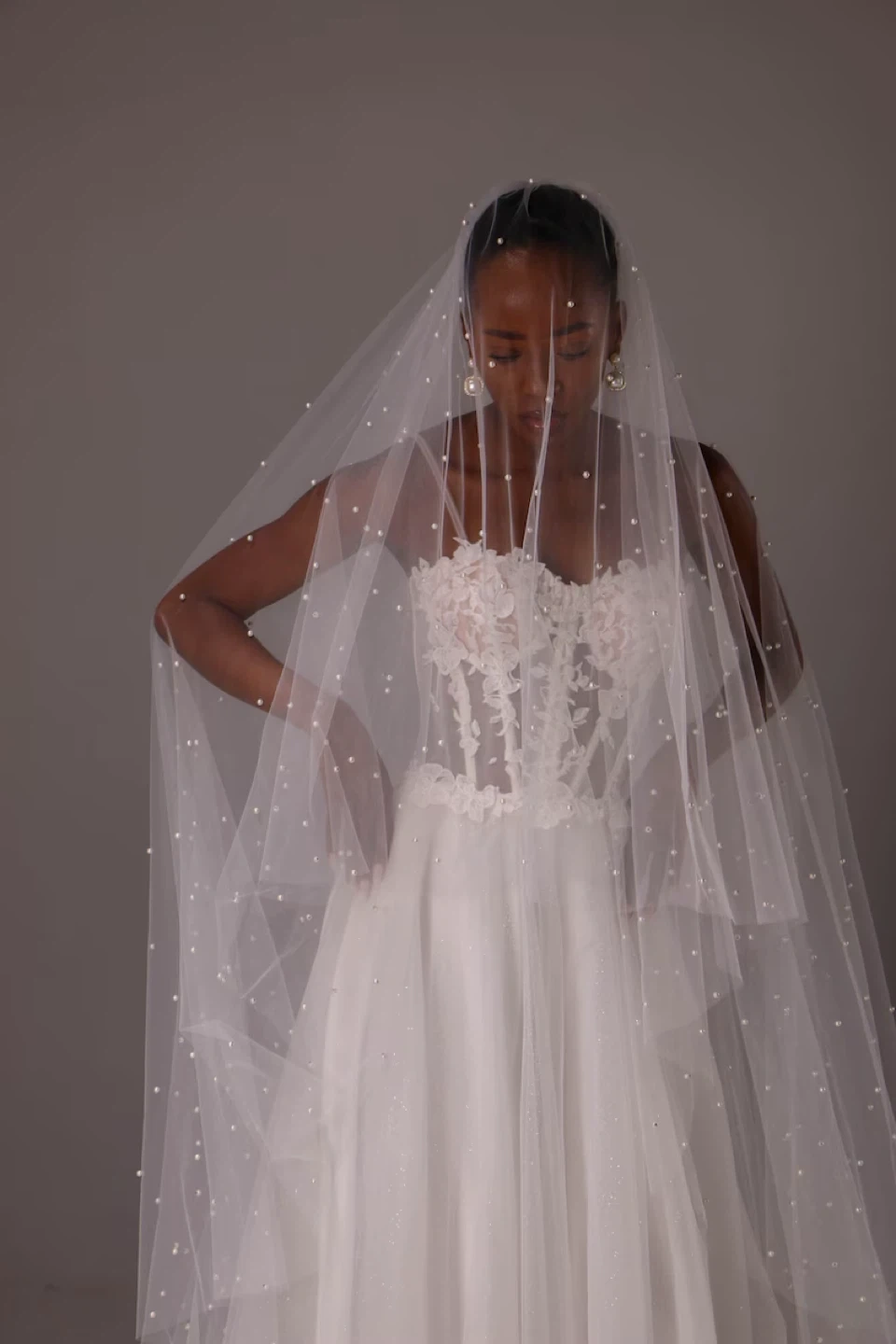 90” Pearled Chapel Veil with Blusher
