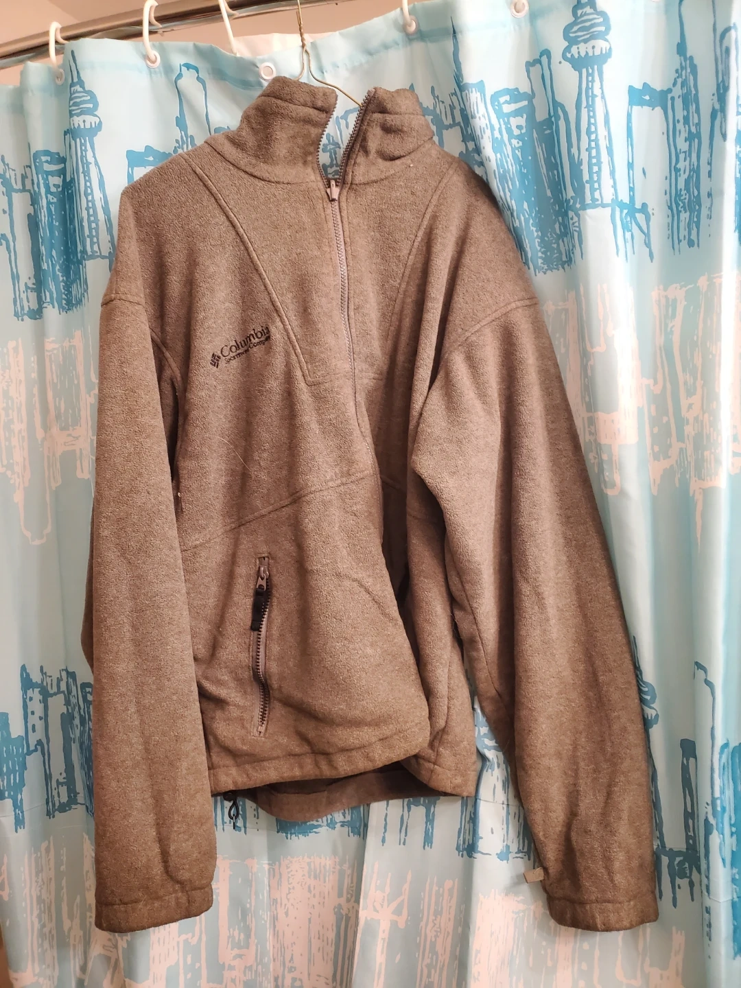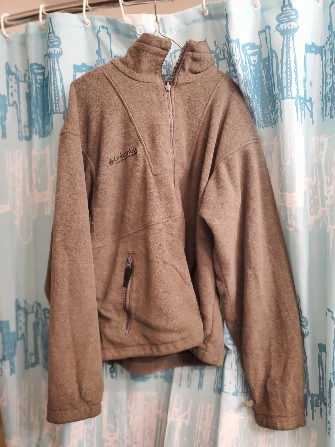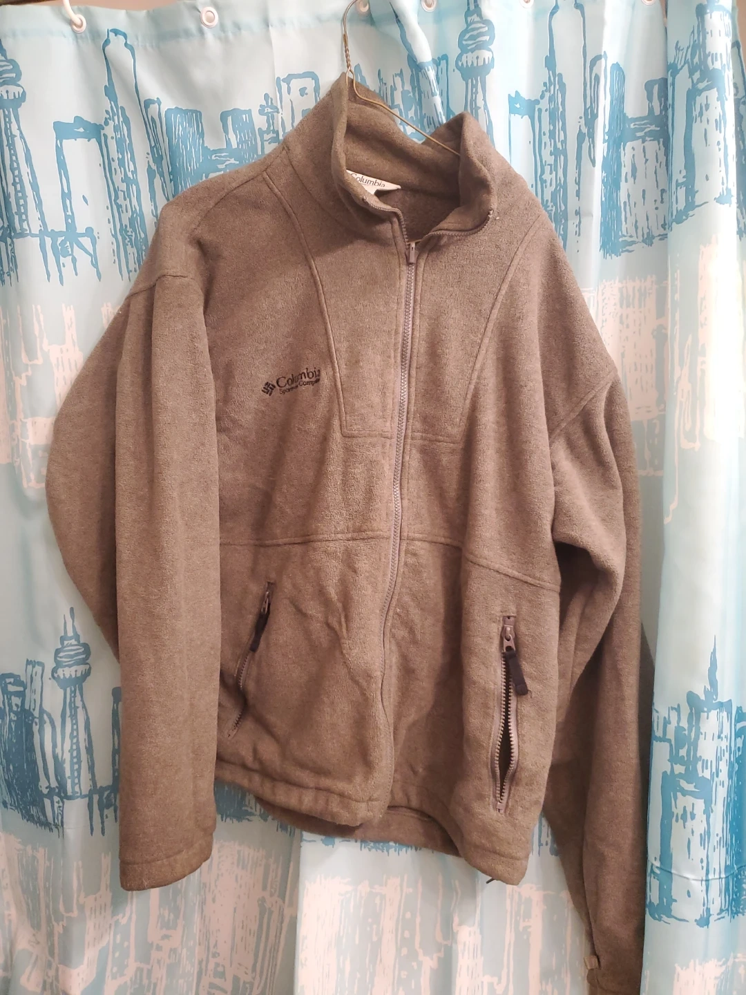 This Columbia Sportswear fleece jacket is a men's medium. It's a warm and comfortable layering piece. Full zip front with a zippered chest pocket. Cedar pick up.