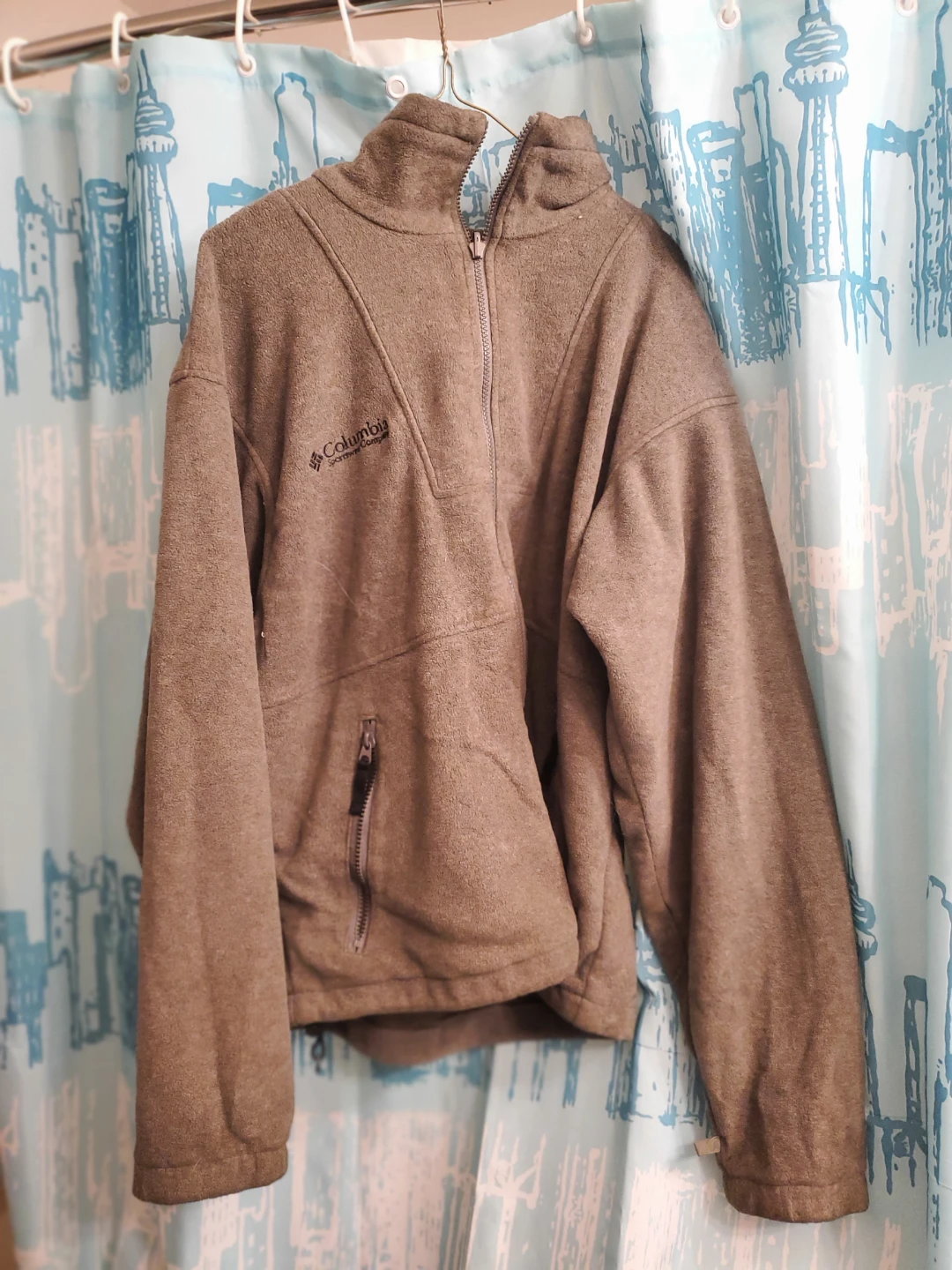 This Columbia Sportswear fleece jacket is a men's medium. It's a warm and comfortable layering piece. Full zip front with a zippered chest pocket. Cedar pick up.