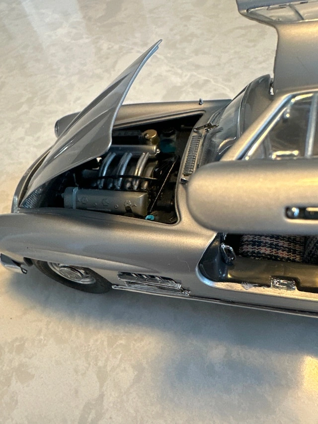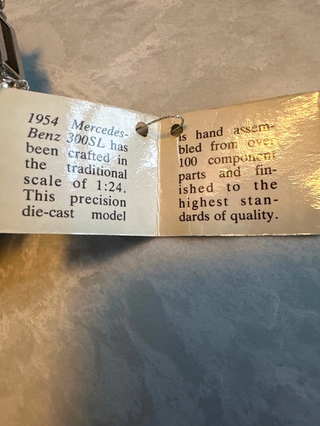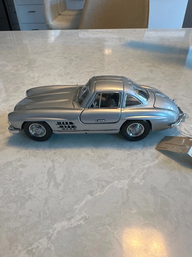 1:24 scale die-cast model of a silver 1954 Mercedes-Benz 300SL Gullwing coupe, manufactured by Franklin Mint. Condition: Used - Good. Let me know if you're interested!