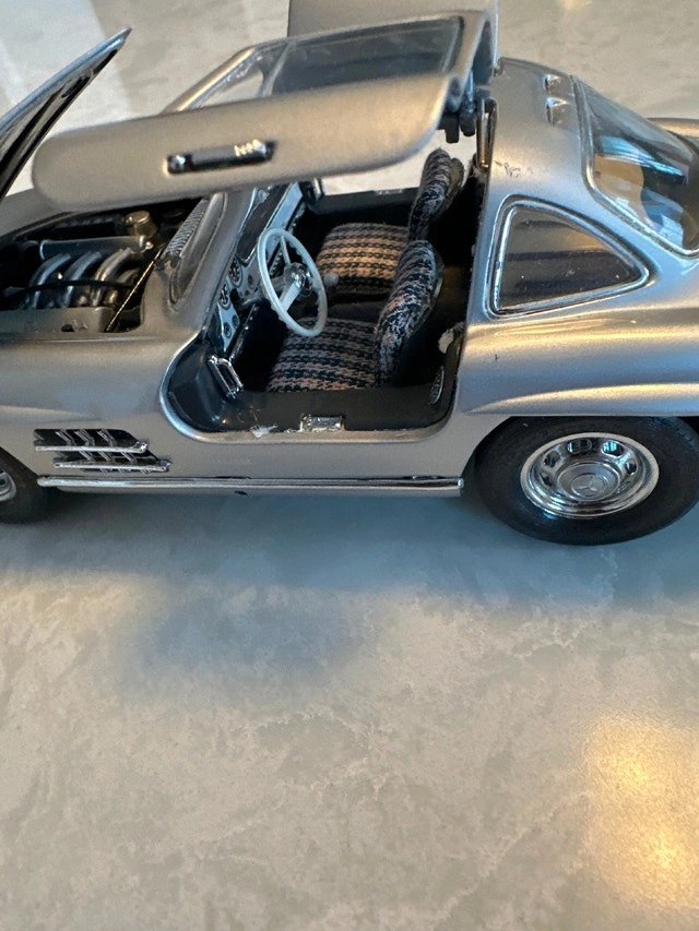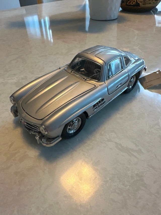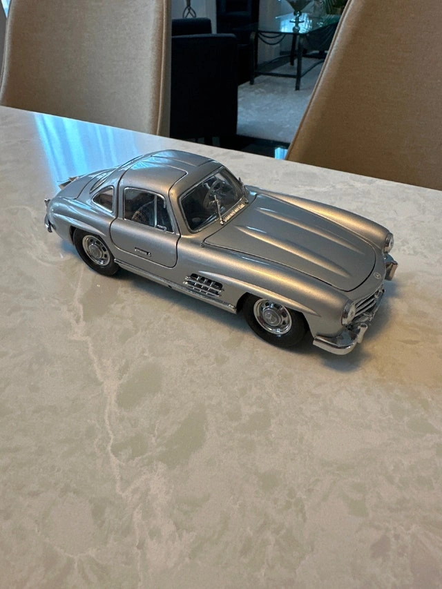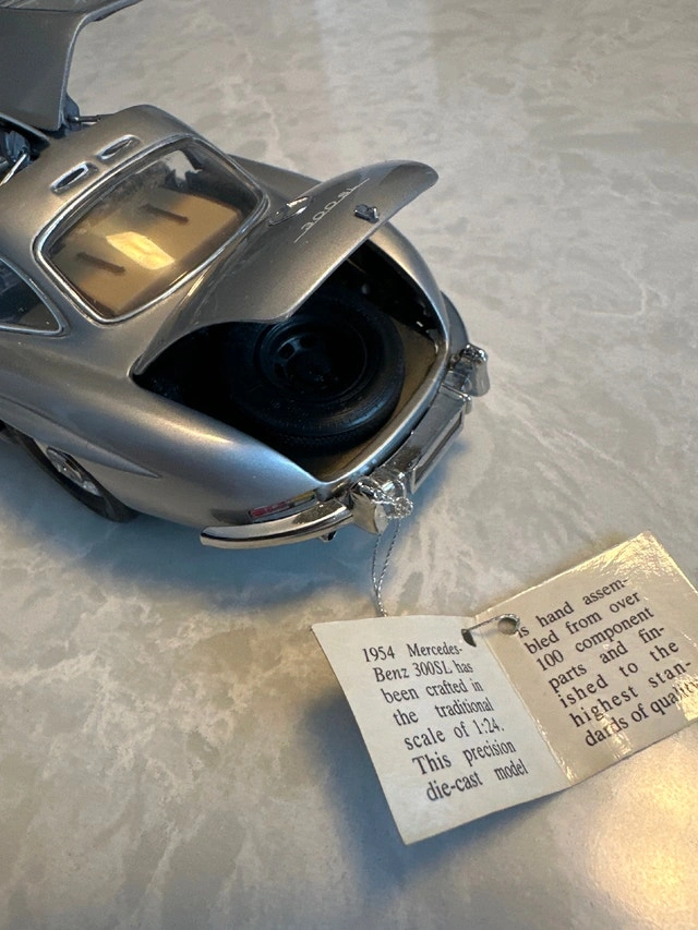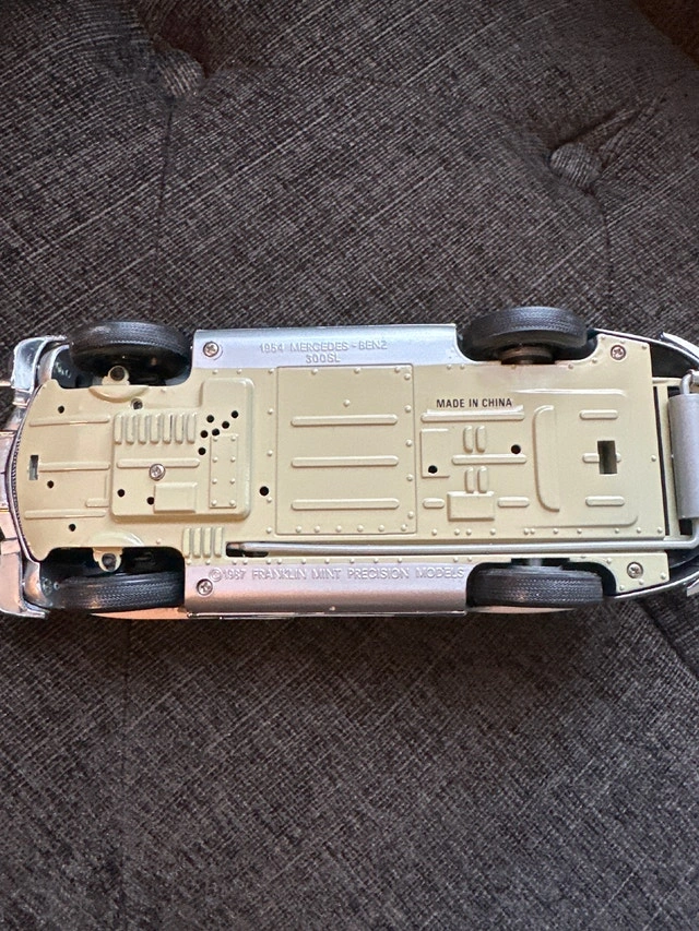 1:24 scale die-cast model of a silver 1954 Mercedes-Benz 300SL Gullwing coupe, manufactured by Franklin Mint. Condition: Used - Good. Let me know if you're interested!