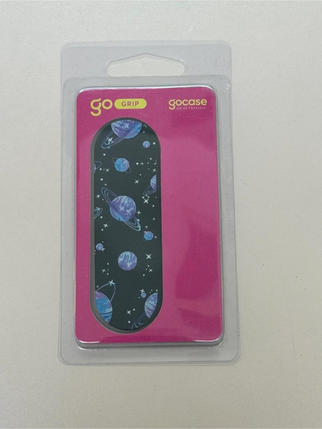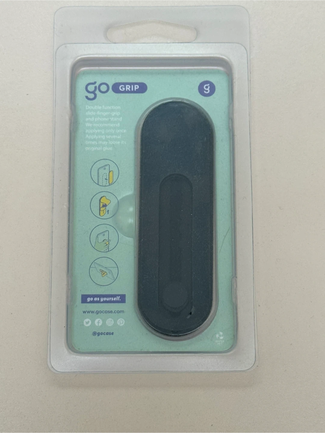 This is a GoCase Go Grip phone stand. It's a double-function slide-finger grip and phone stand. Applying it once provides several uses without losing its original glue. Use it as a finger grip or phone stand!