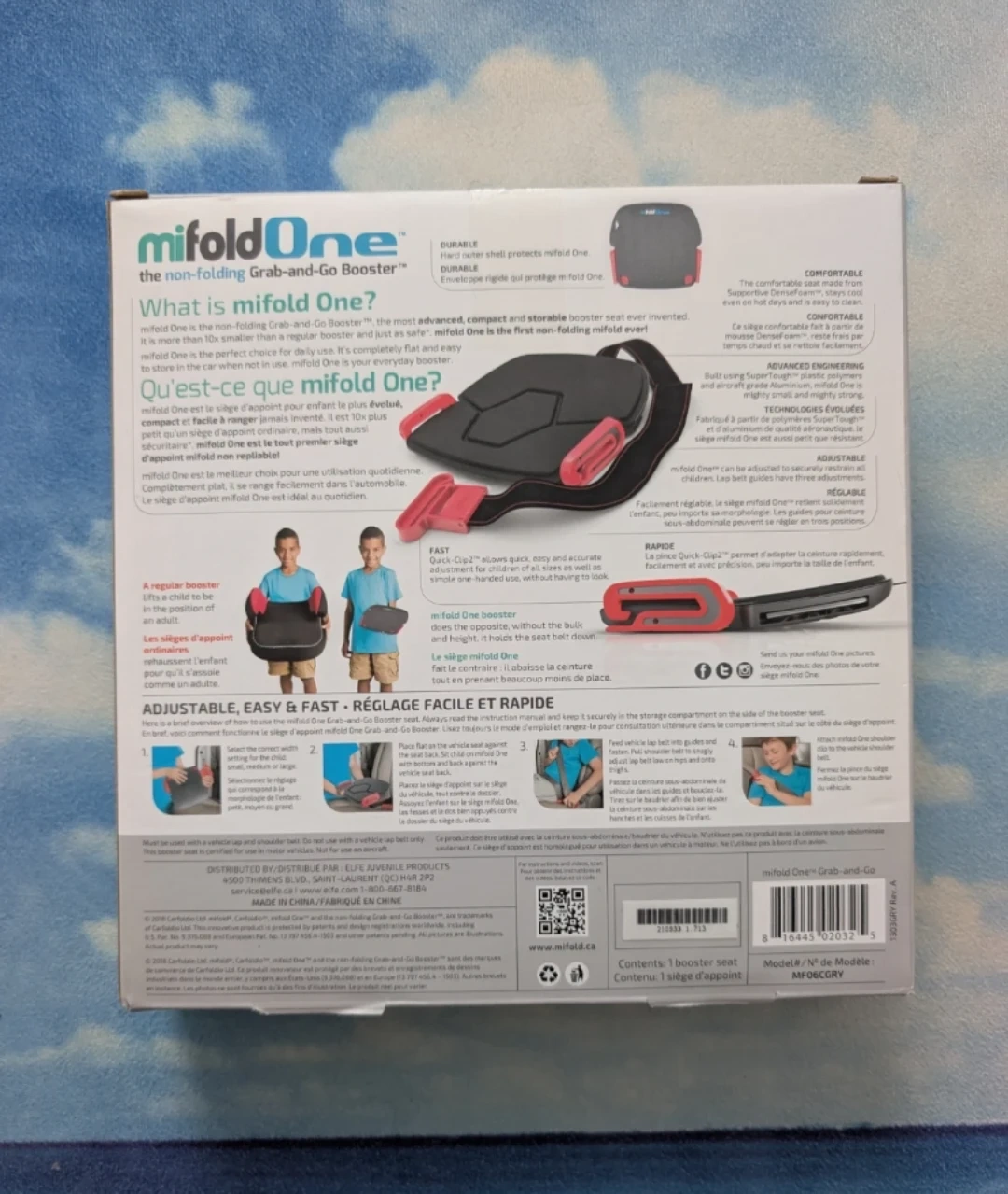 New in box - Mifold One Comfortable Booster Seat - Grey Convertible car seat.