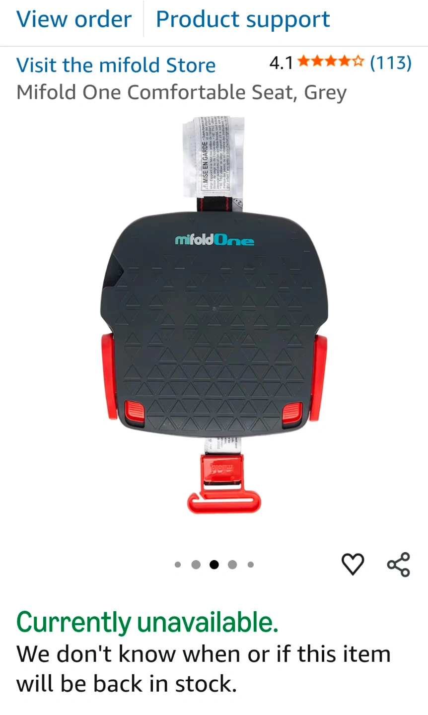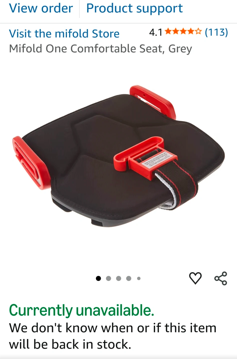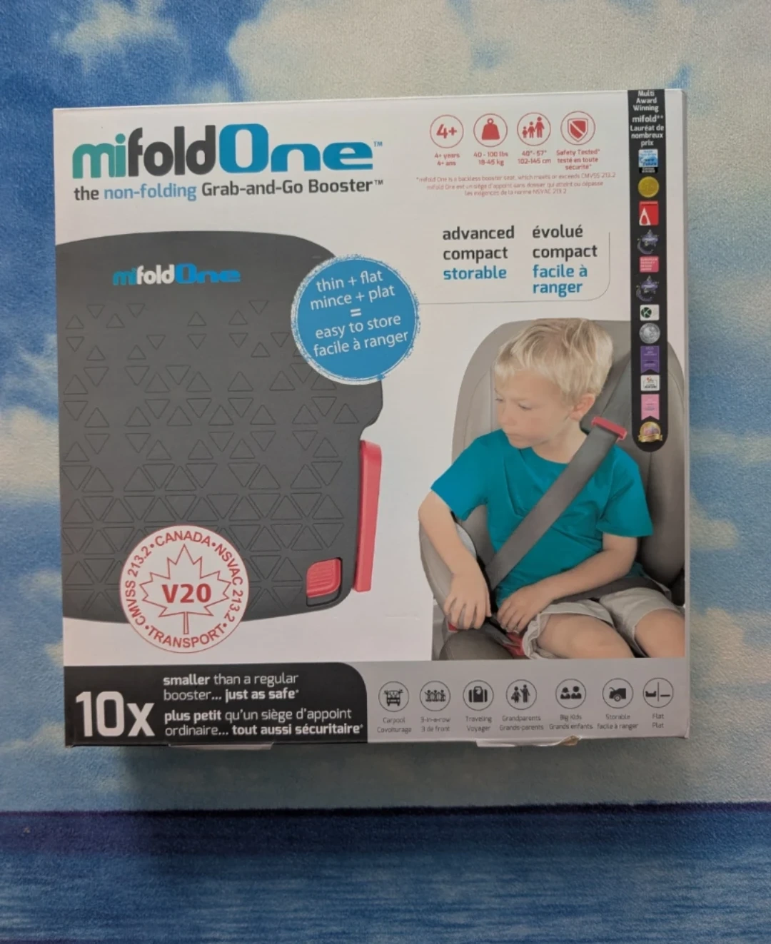 New in box - Mifold One Comfortable Booster Seat - Grey Convertible car seat.