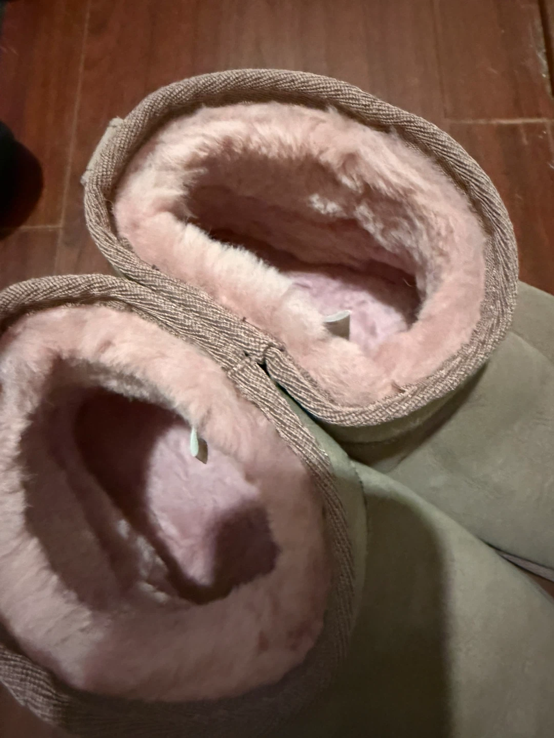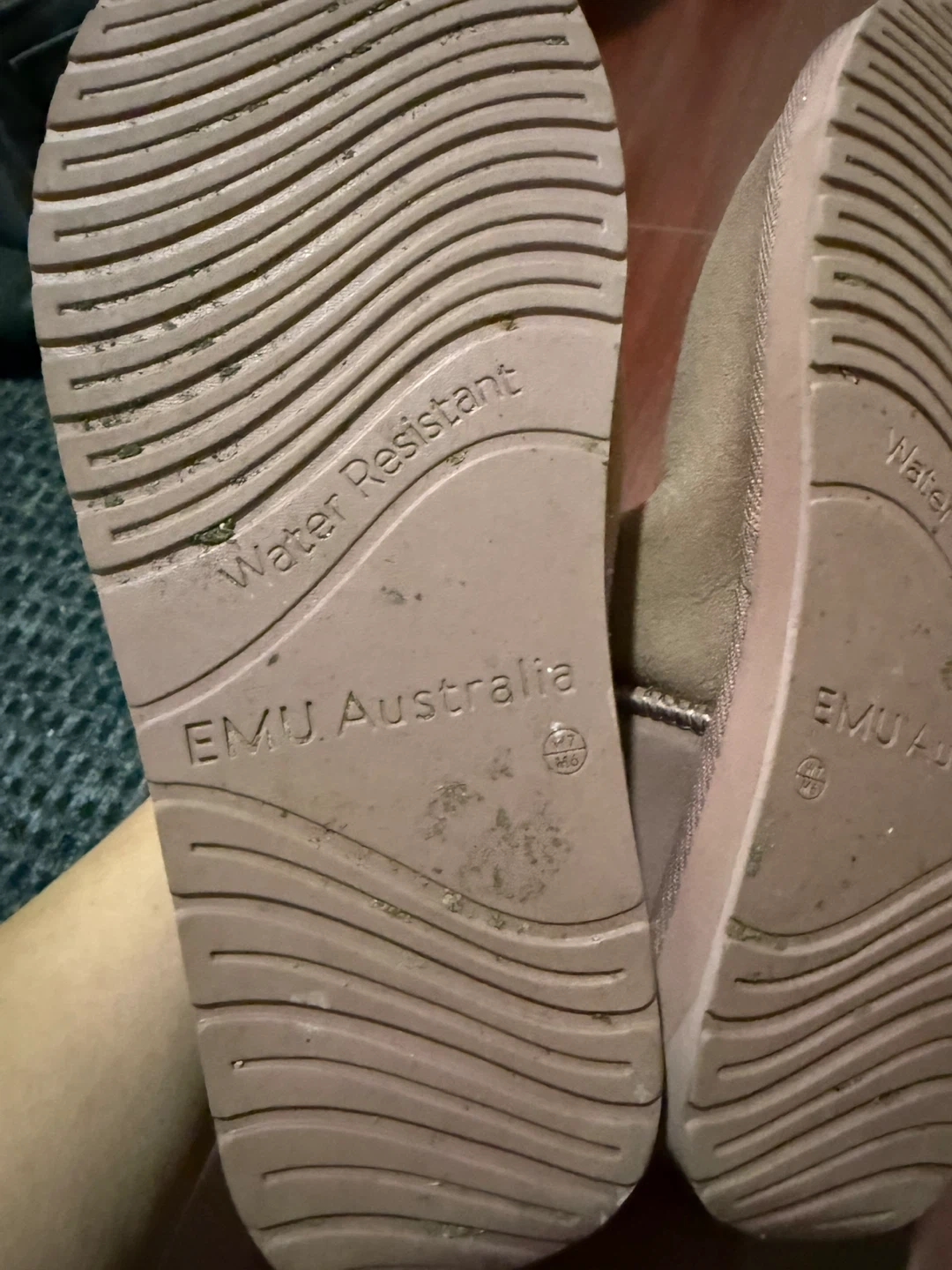 Cozy Emu Australia sheepskin boots in tan. These short boots feature a plush pink lining and are water-resistant. Perfect for keeping your feet warm and dry!