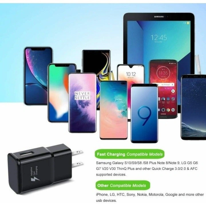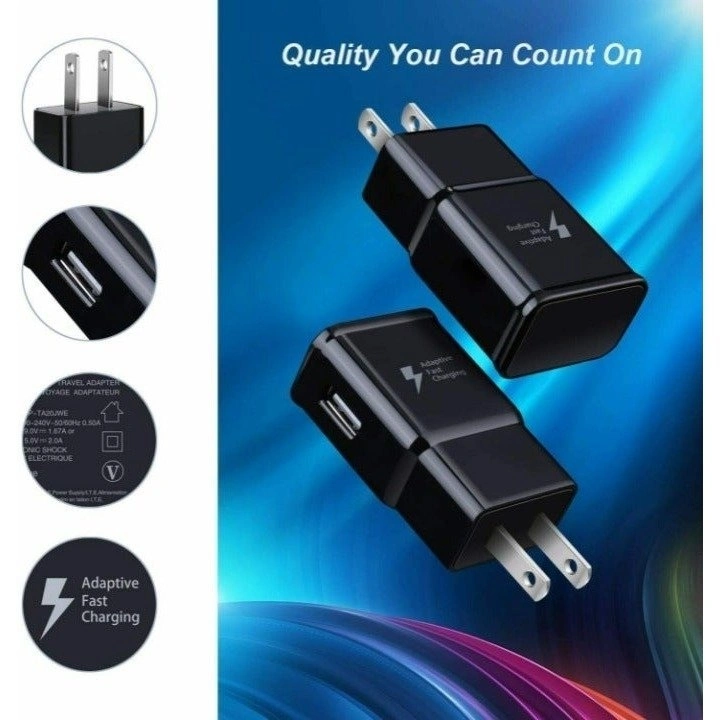 NEW Generic Adaptive Fast Charger for Samsung Galaxy Phones for Samsung Galaxy S9, S9+, S10, S10+, Note 9, Note 10+. You get: 1X Adapter Fast Wall Charger, 1X 4FT USB-C Charging cable. Safeguard protection: protects your Device against over-heating, over-charging and over-current. Input 100V-240V (U.S. And world standard); output: DC 5.0V. Includes: high power 2 amp travel charger head unit.