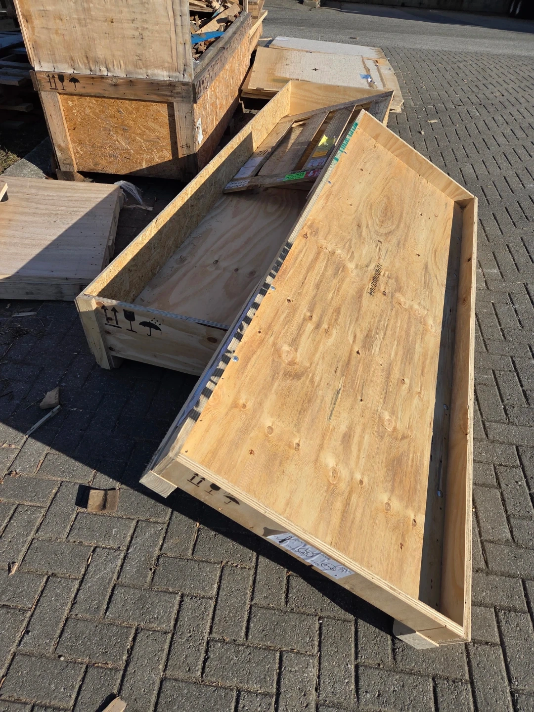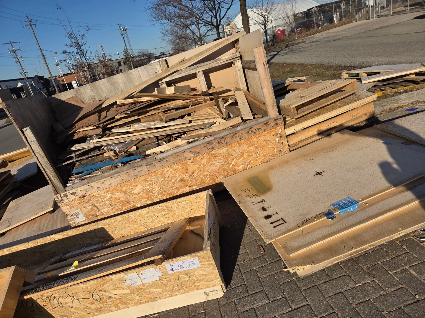 I have a bunch of wooden piecea available. They come in various sizes and are perfect for DIY projects, furniture making, or shipping. Feel free to take a look and see if they fit your needs. Curbside of 391 attwell. We have some stuff inside now . Come during monday to friday 830am to 430pm and come in the shipper receiver door next to dock 1