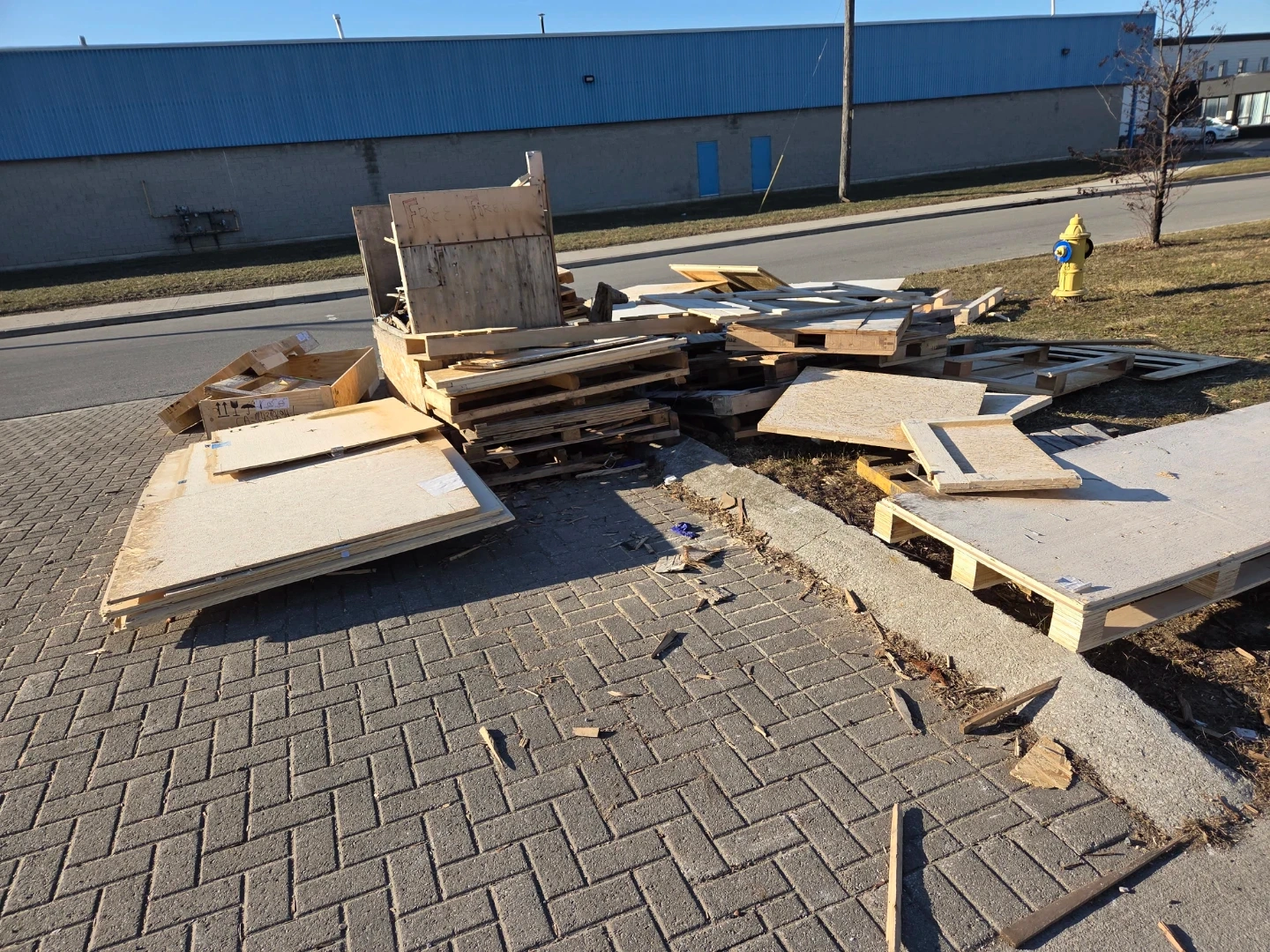 I have a bunch of wooden piecea available. They come in various sizes and are perfect for DIY projects, furniture making, or shipping. Feel free to take a look and see if they fit your needs. Curbside of 391 attwell. We have some stuff inside now . Come during monday to friday 830am to 430pm and come in the shipper receiver door next to dock 1