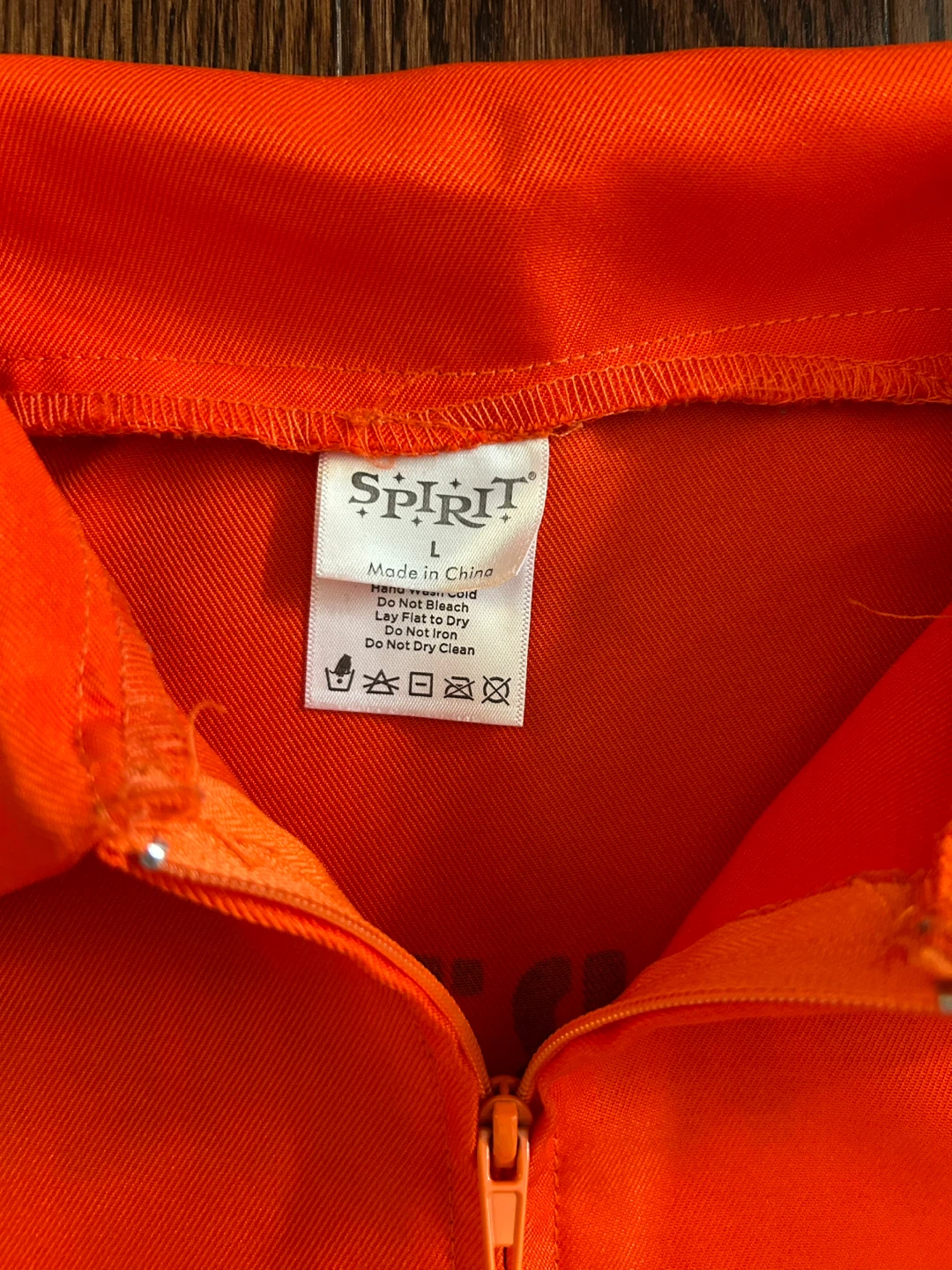 Selling a Spirit Halloween Convict costume for kids! It's a child's size large (12-14). The costume is orange and says DOC on the front and Department of Corrections on the back. Includes the jumpsuit only.