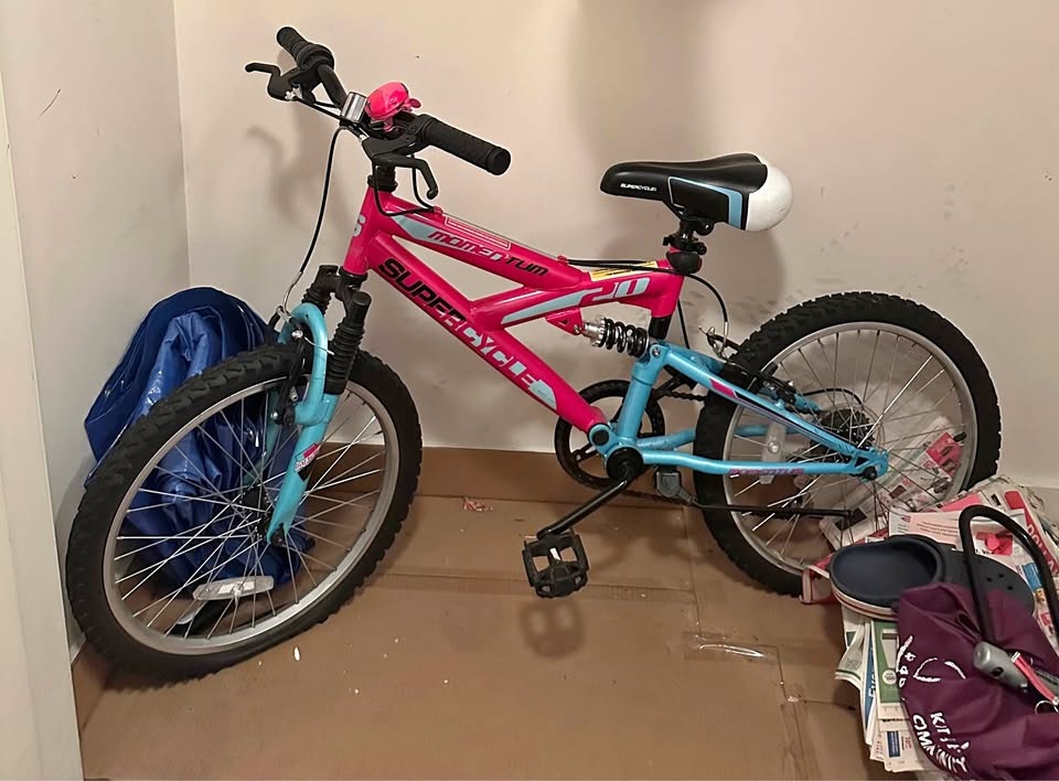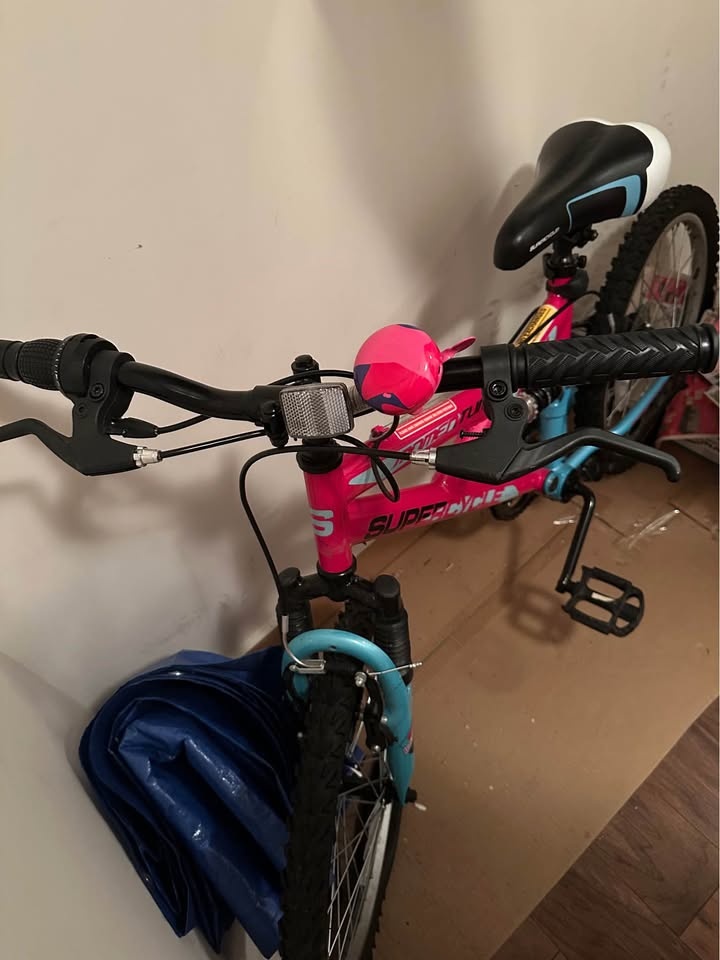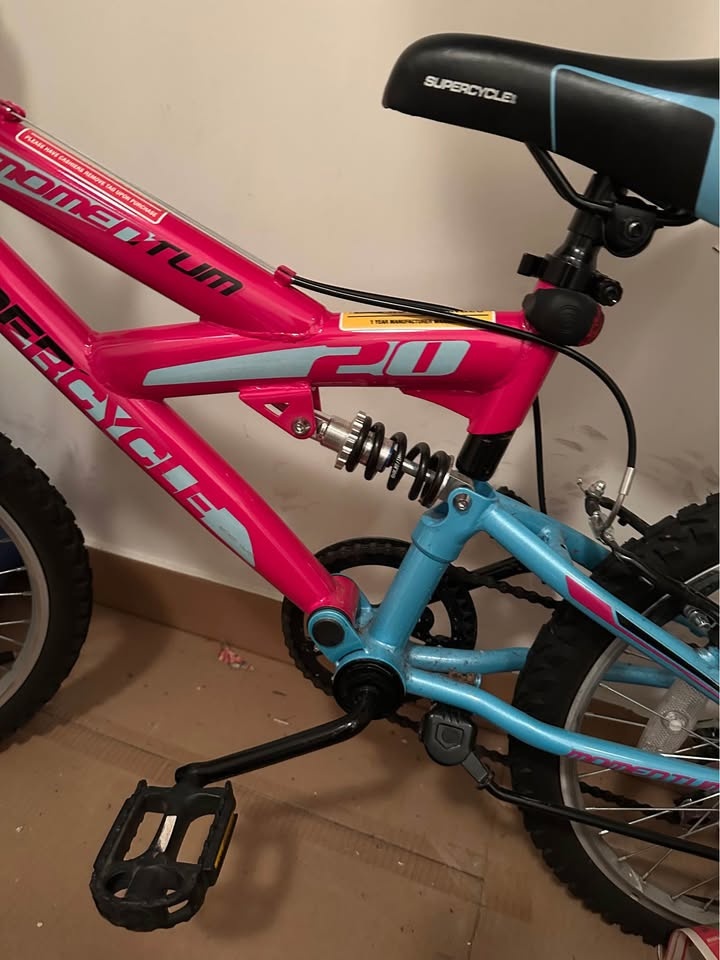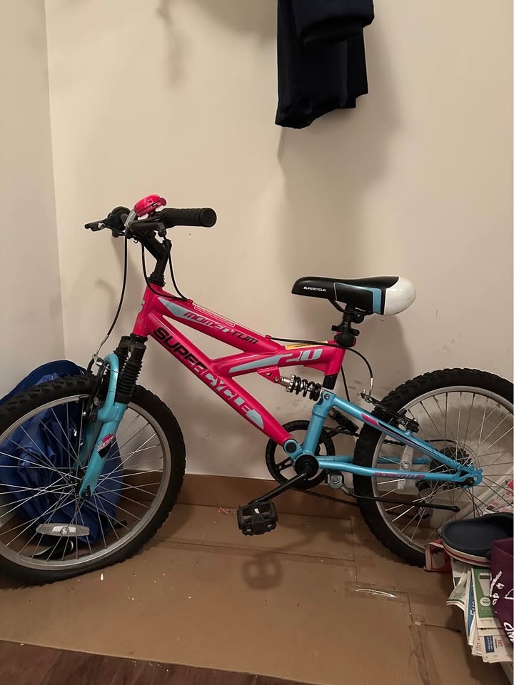 Selling a Supercycle Momentum 20-inch kids bike. It has been ridden only a few times and is in great condition, with tire tread still looking almost new. The bike has always been stored indoors. Features: • 20” wheels • Front & rear suspension • Working brakes • Bell included • Clean and ready to ride Price: • Bike only: $100 • Bike + MIPS helmet: $120 Pickup only.