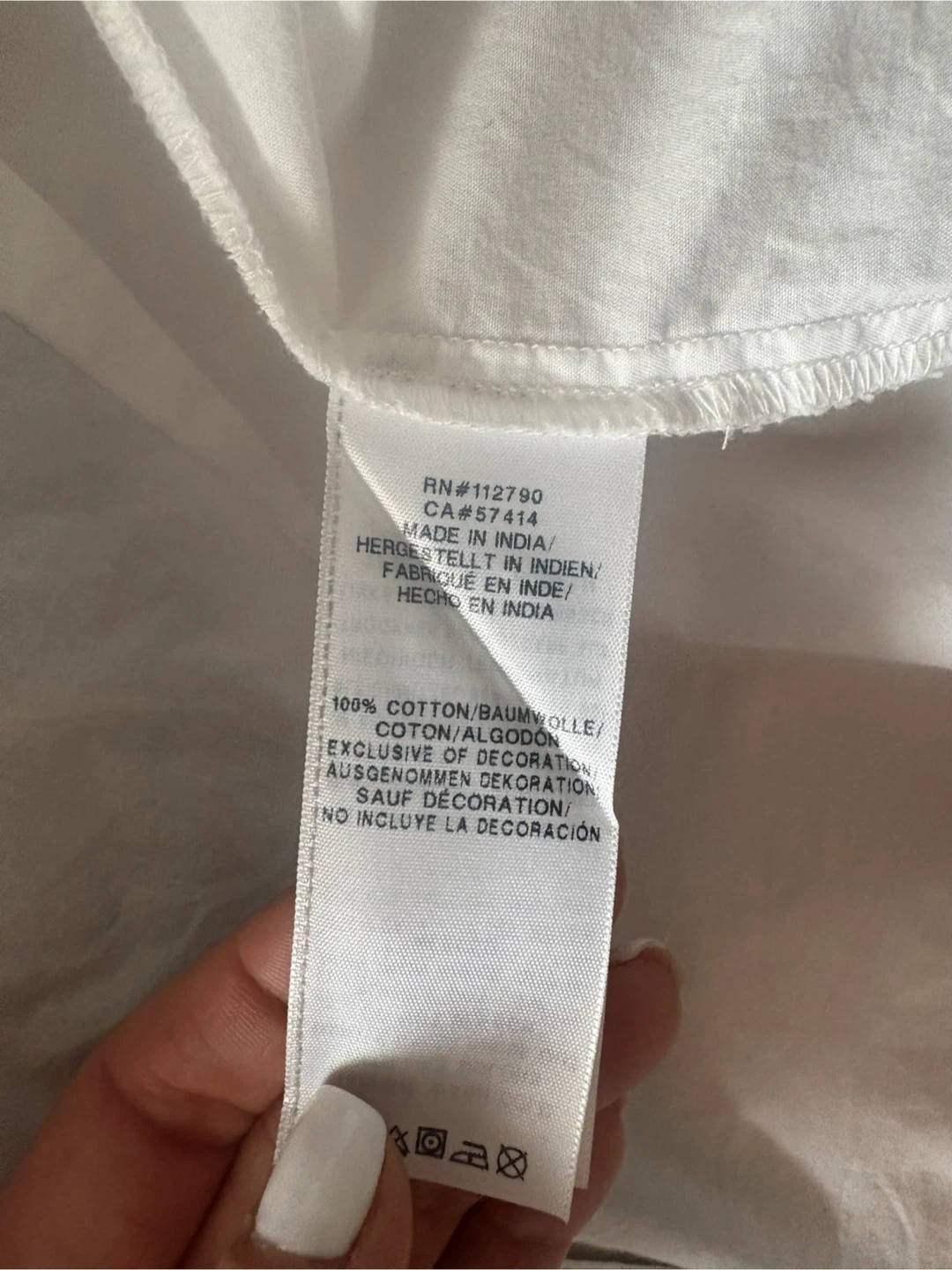 It's a crisp white colour and made of 100% cotton.