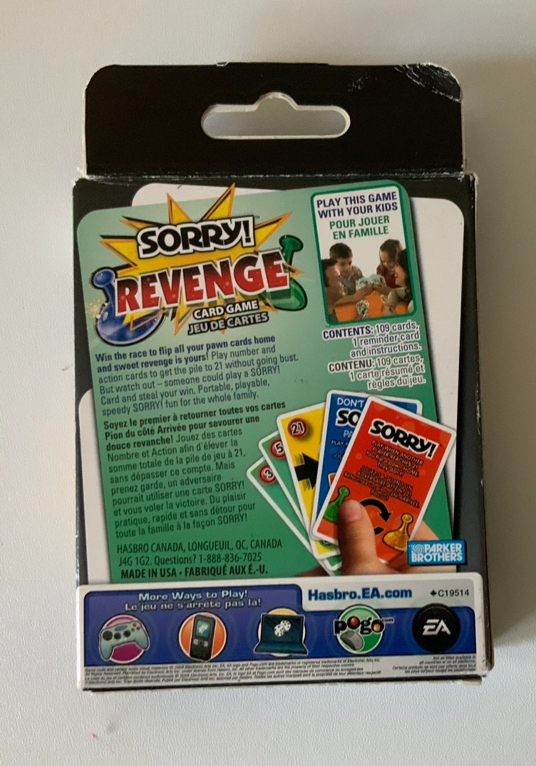 New - Sorry! Revenge card game. Hasbro. Complete in box. Age 6+. $20.
