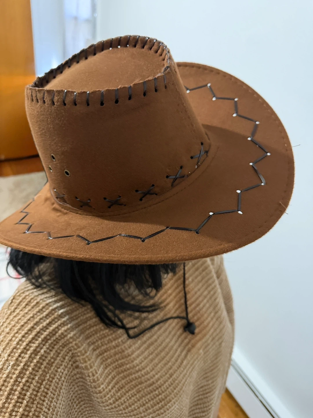 Brown Suede Cowboy Hat with Stitching