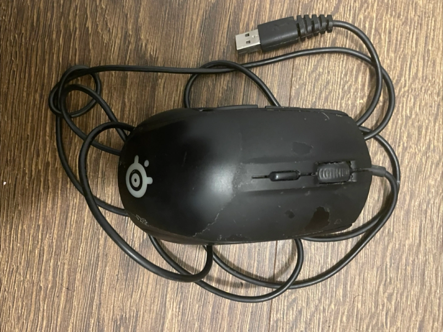 Wired gaming mouse. Shows some wear.