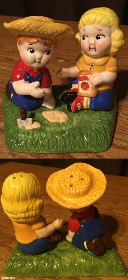 SALT & PEPPER BOYS HAND WAS GLUED, OTHERWISE GREAT CONDITION.