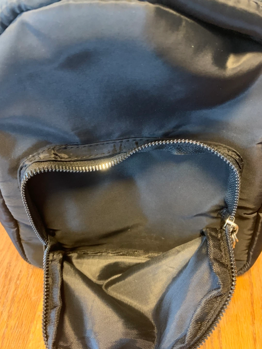 Chain zipper, adjustable straps, basic bag for every outfit. Slippery Material