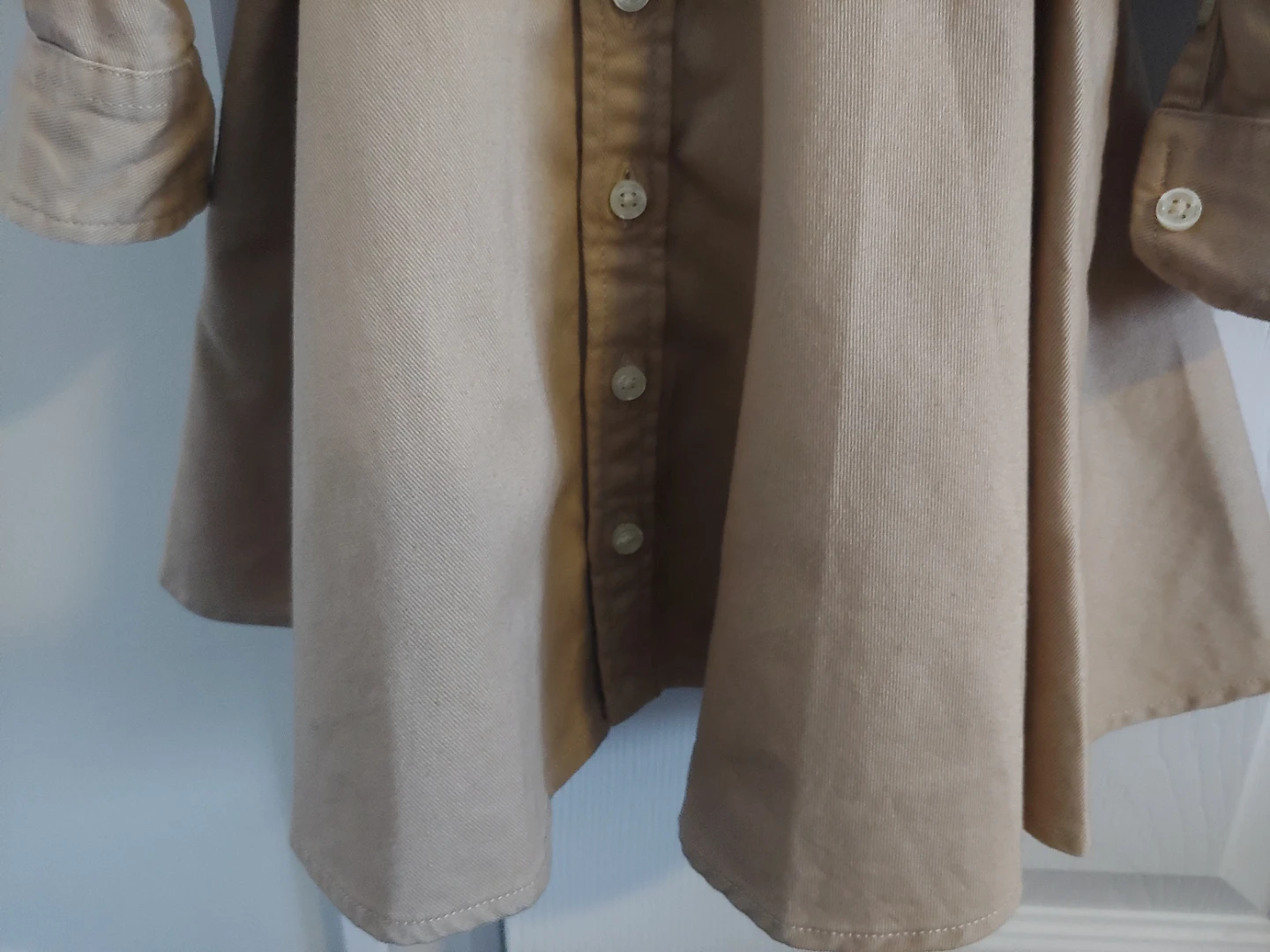 Classic Polo Ralph Lauren shirt dress is a khaki colour and comes with a striped belt. Made from cotton. It's a size 2/2T. Worn once for an hour, kept in the same beautiful condition, looks like new. Retails for $85.