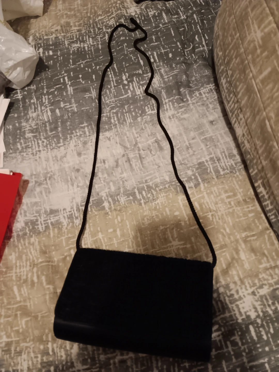This Nytlites clutch purse is black and has a textured front. It's made in China. The interior features a small slip pocket.