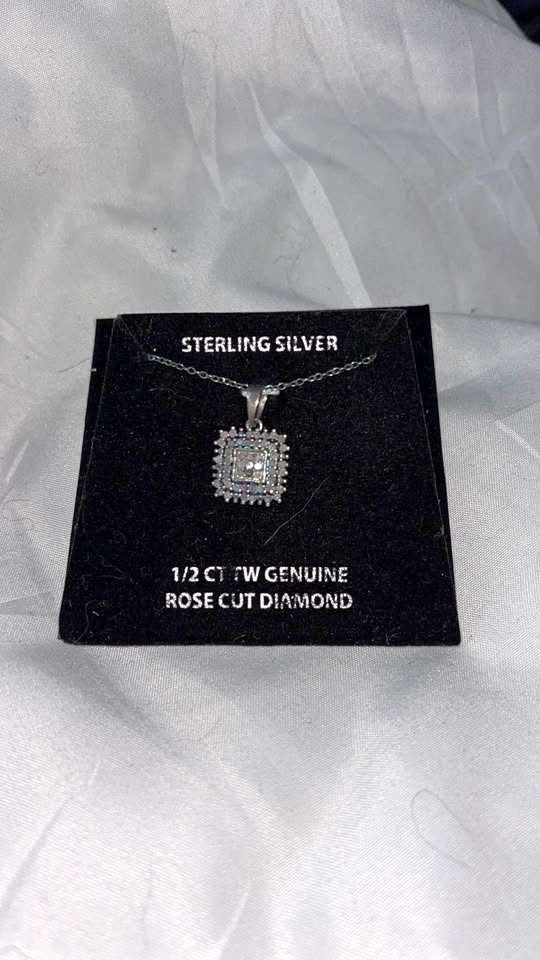 Brand new, never worn. This is a Victoria Townsend sterling silver necklace featuring 1/2 ct. total weight genuine rose-cut diamonds. It was only taken out of the box for photos and selling—the necklace itself is in perfect condition. The original box is damaged, but the jewelry is brand new.