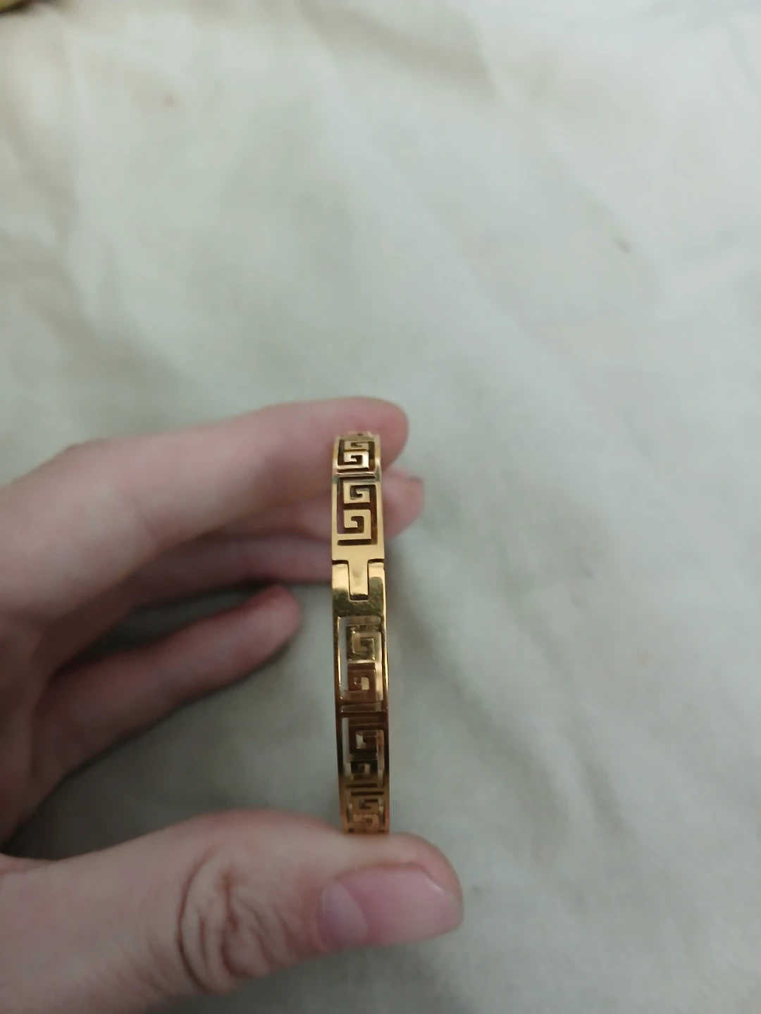 Brand new 18K gold plated 304 stainless stee greek keyl open bangle. Cash only. Pick up or meet up in public place. Willing to bargain on the price.
