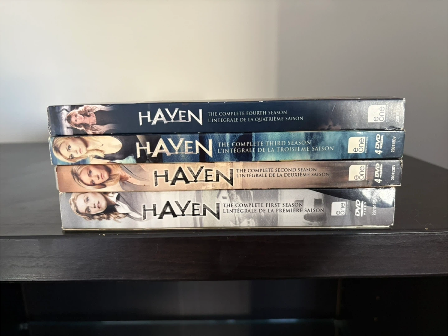 This listing includes the complete first through fourth seasons of Haven on DVD. Each season is a full set of episodes for that year. It's a great collection for fans of the show!