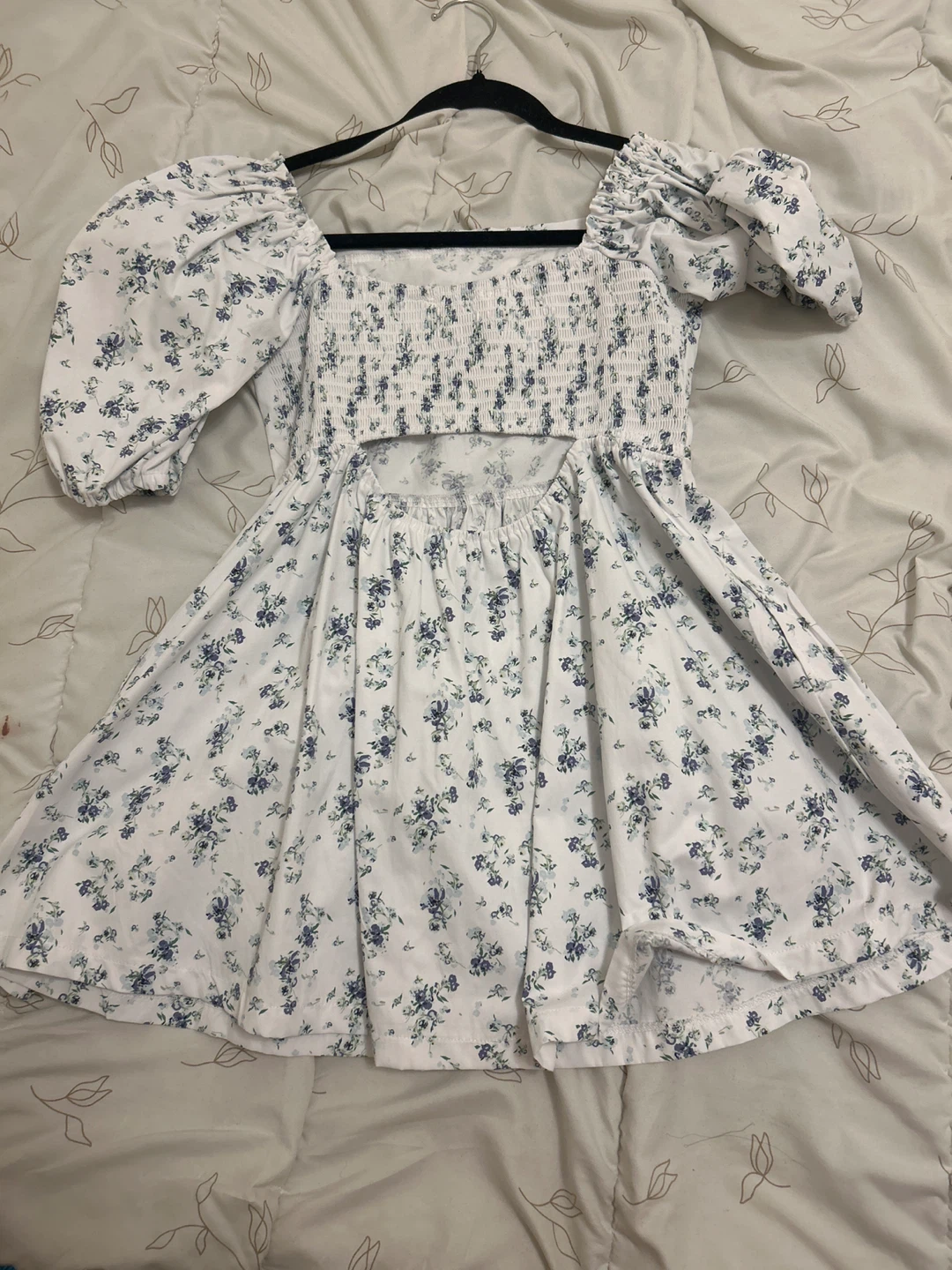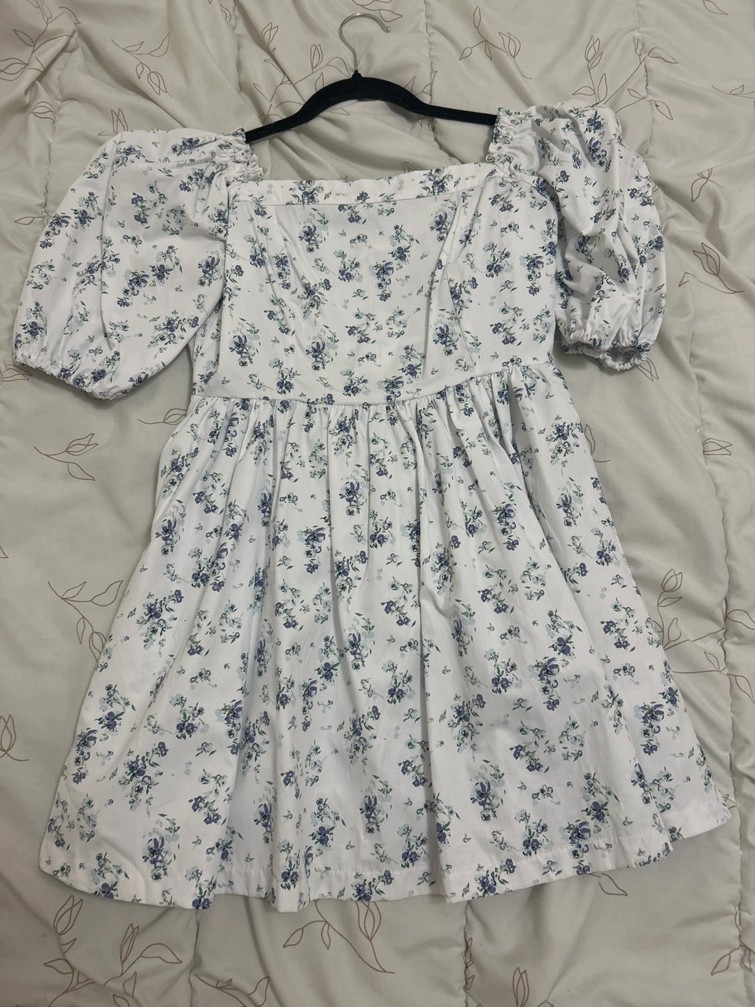 Cute floral mini dress in a size small! It features a square neckline and short puff sleeves. The dress has a fitted bodice and a flared skirt, perfect for a casual day out