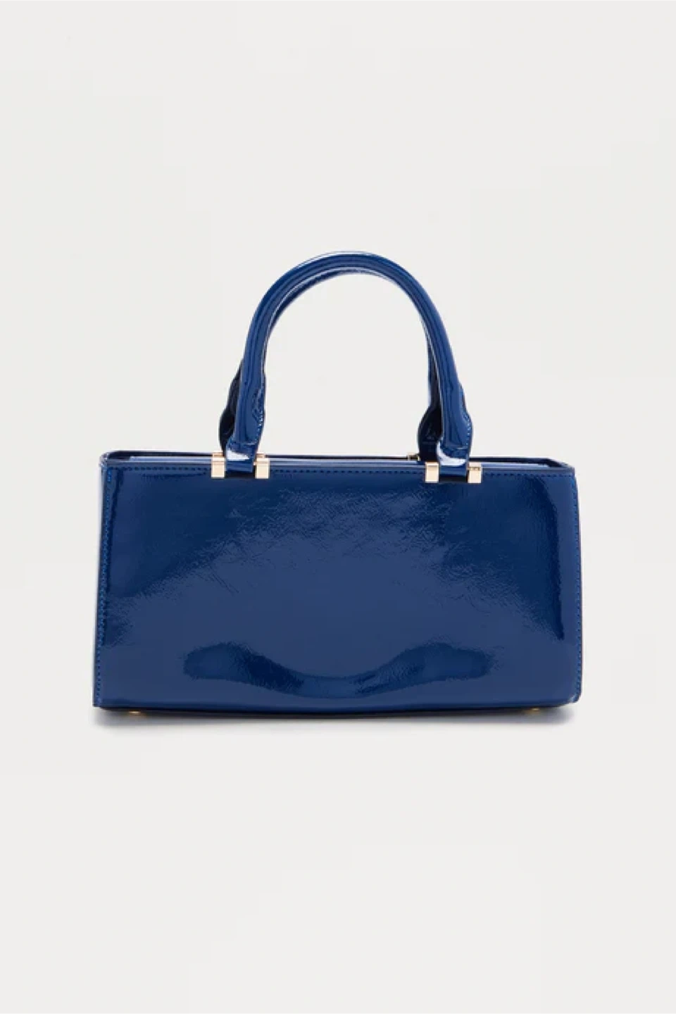 Hi Shine Affair Faux Patent Leather Satchel Handbag - Navy