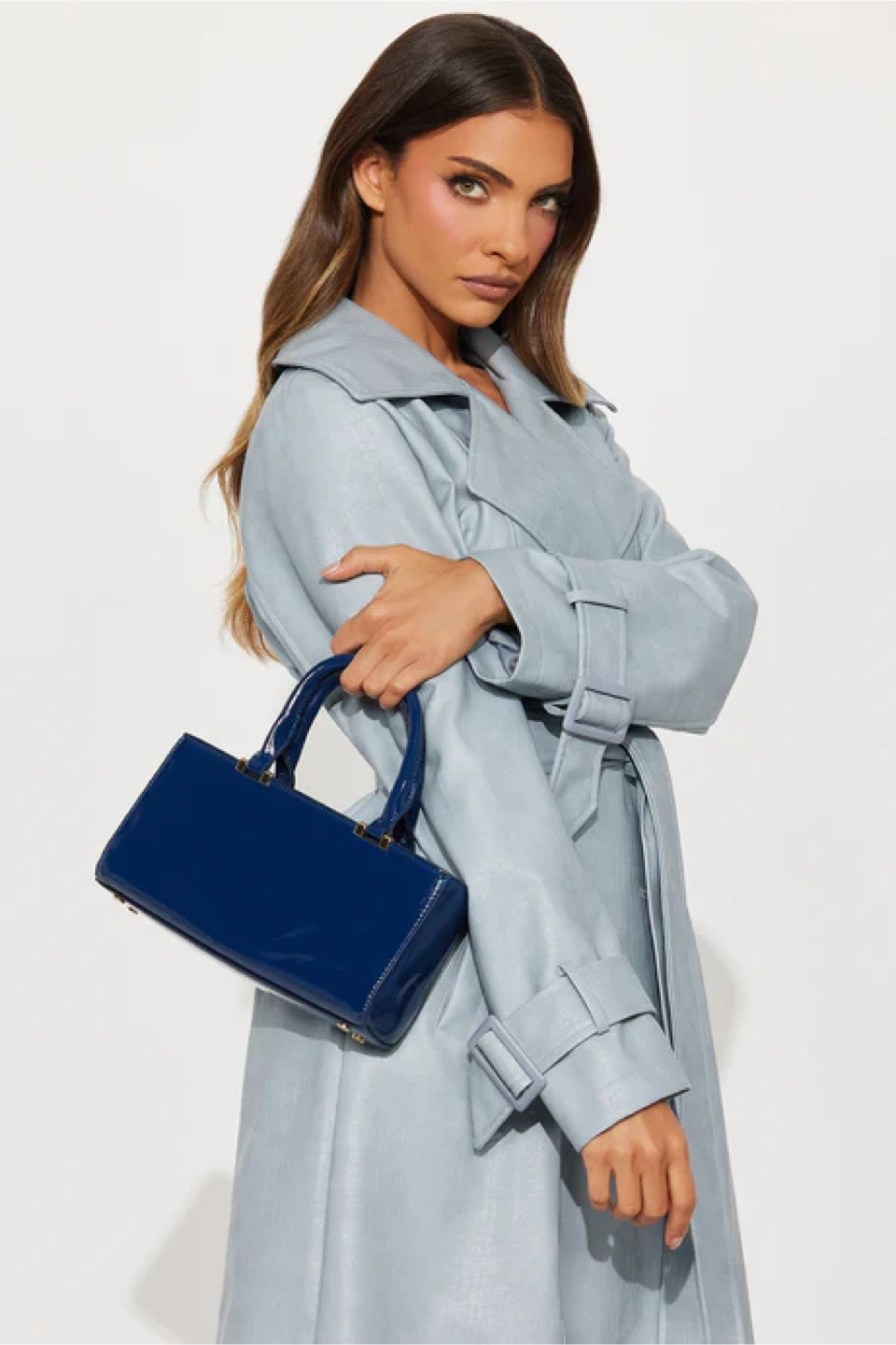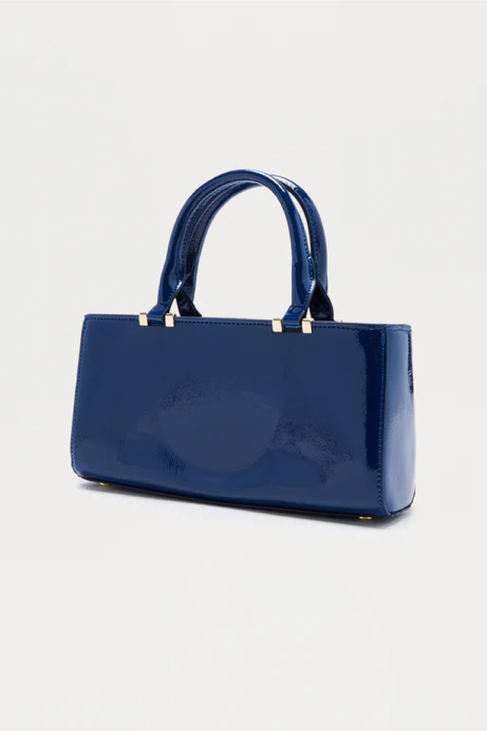 Hi Shine Affair Faux Patent Leather Satchel Handbag - Navy