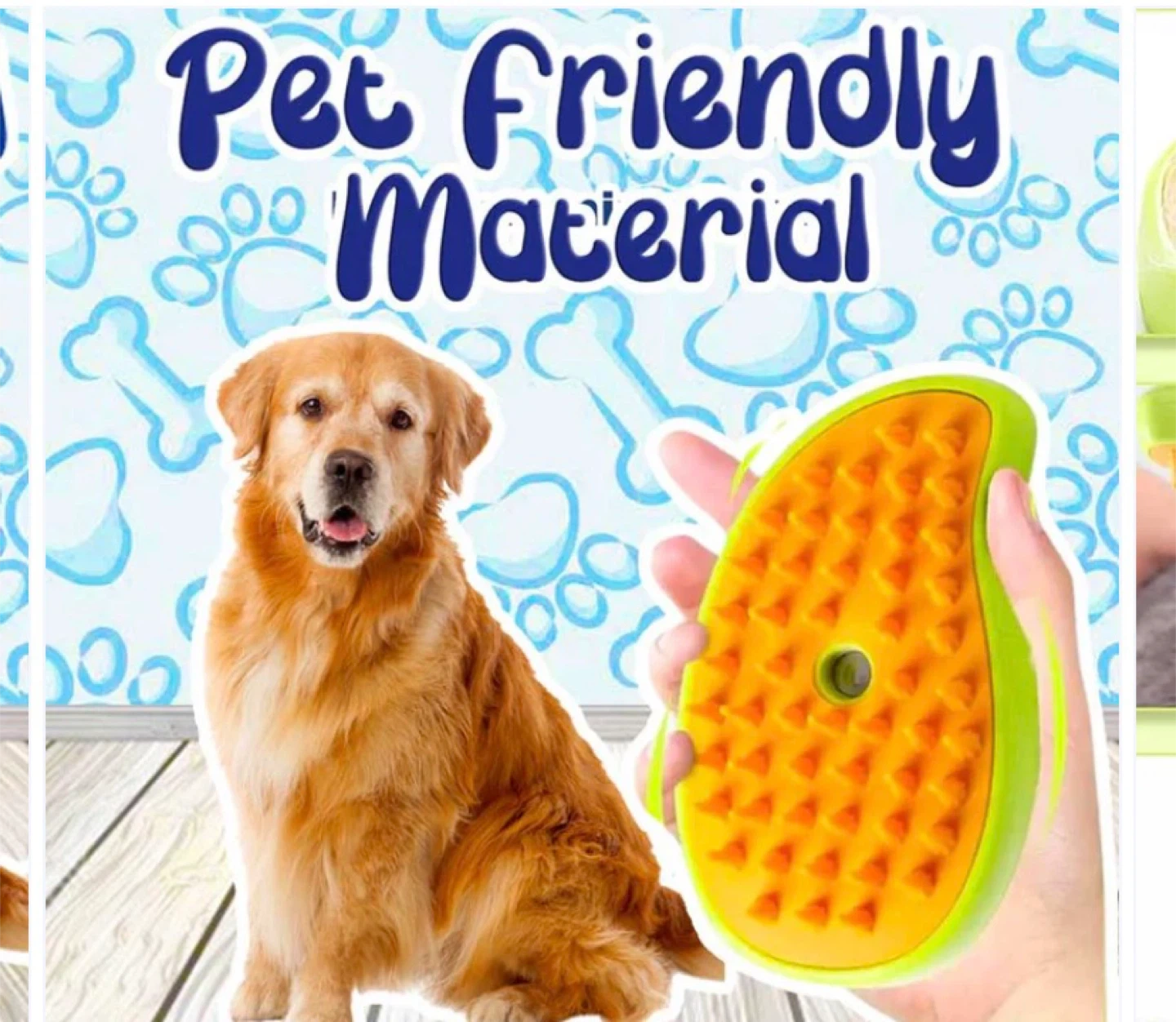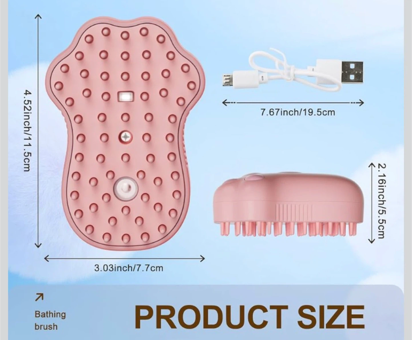 This is the Steamy Brush pet groomer. It helps remove loose hair and can be used for cleaning and massaging your pet. It's made with pet-friendly soft silicone brush head.