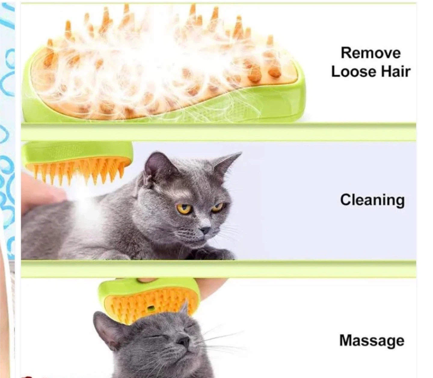 Easily remove loose fur and cleanse your pets coat with the Steamy Brush™ Pet Groomer! The soft silicone bristles combined with soothing steam helps penetrate deep into the undercoat of your pets fur to gently and effectively remove loose hair, tangles, knots, dander and trapped dirt!