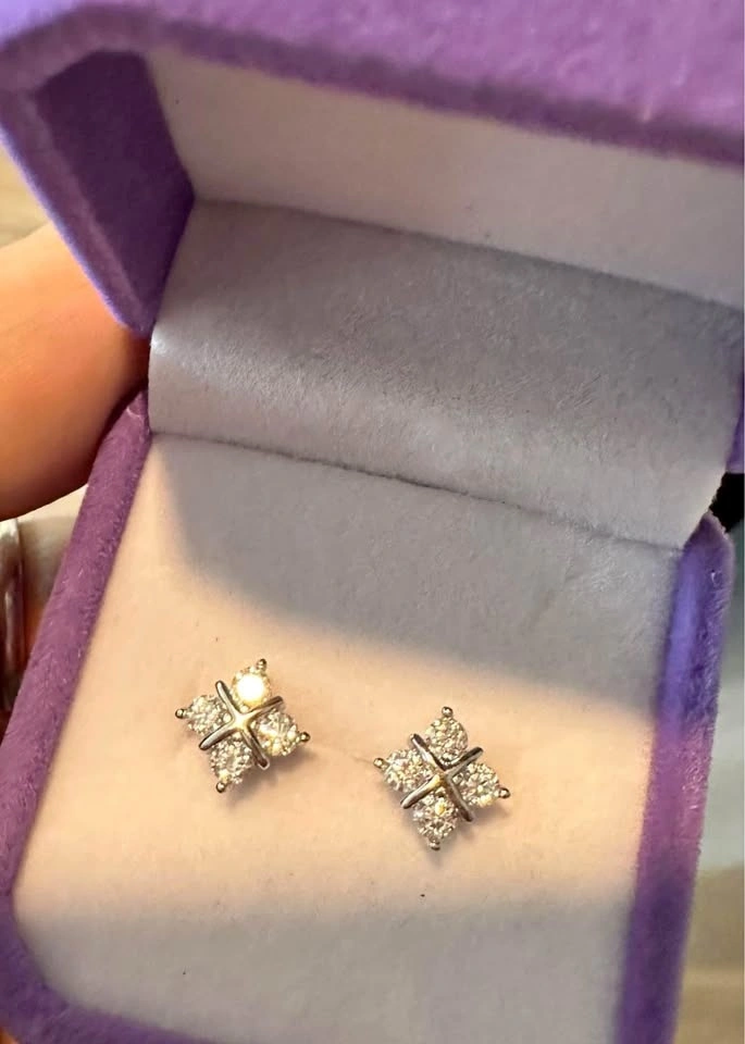 These are brand new diamond square earrings, each weighing .8 ct. They have a VVS1 clarity, D color, and excellent cut grade. A lifetime warranty and authentic lab report are included. You can test them here for authenticity. Pick up only.