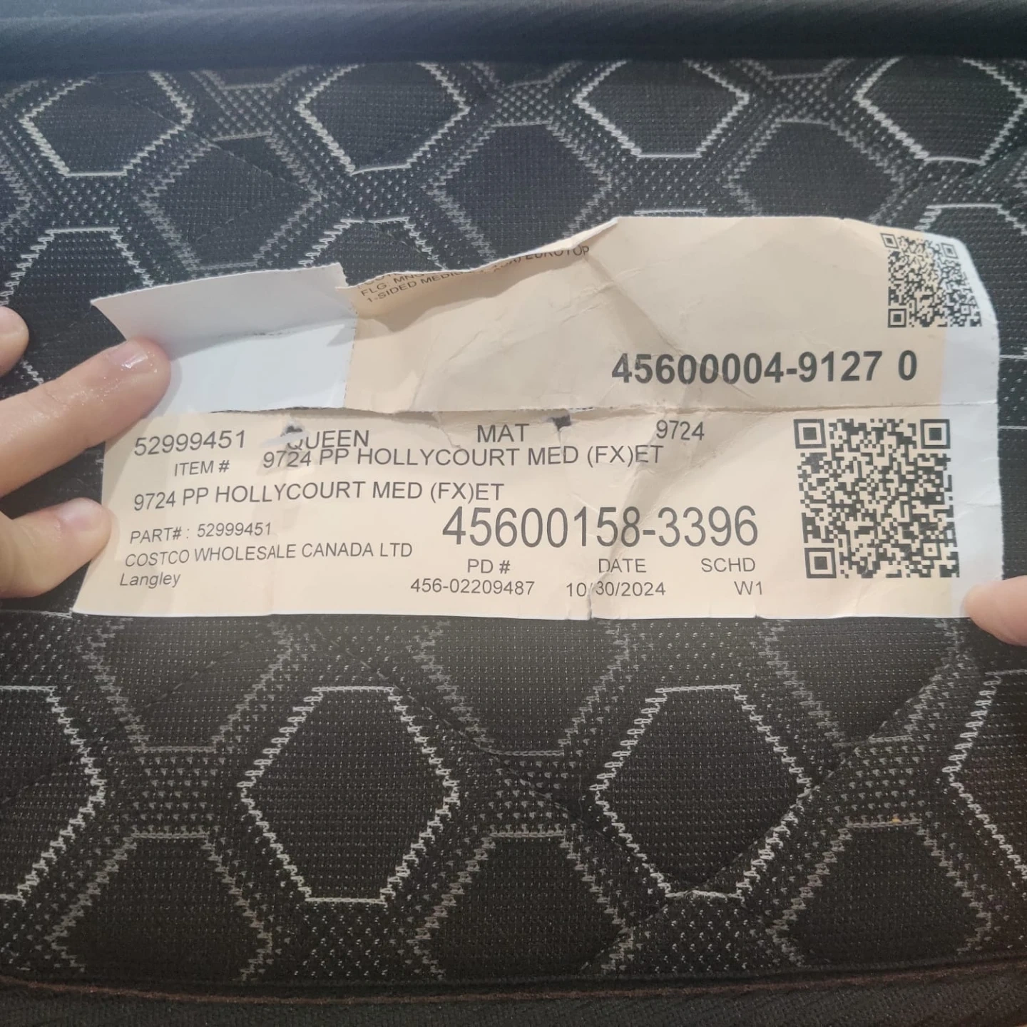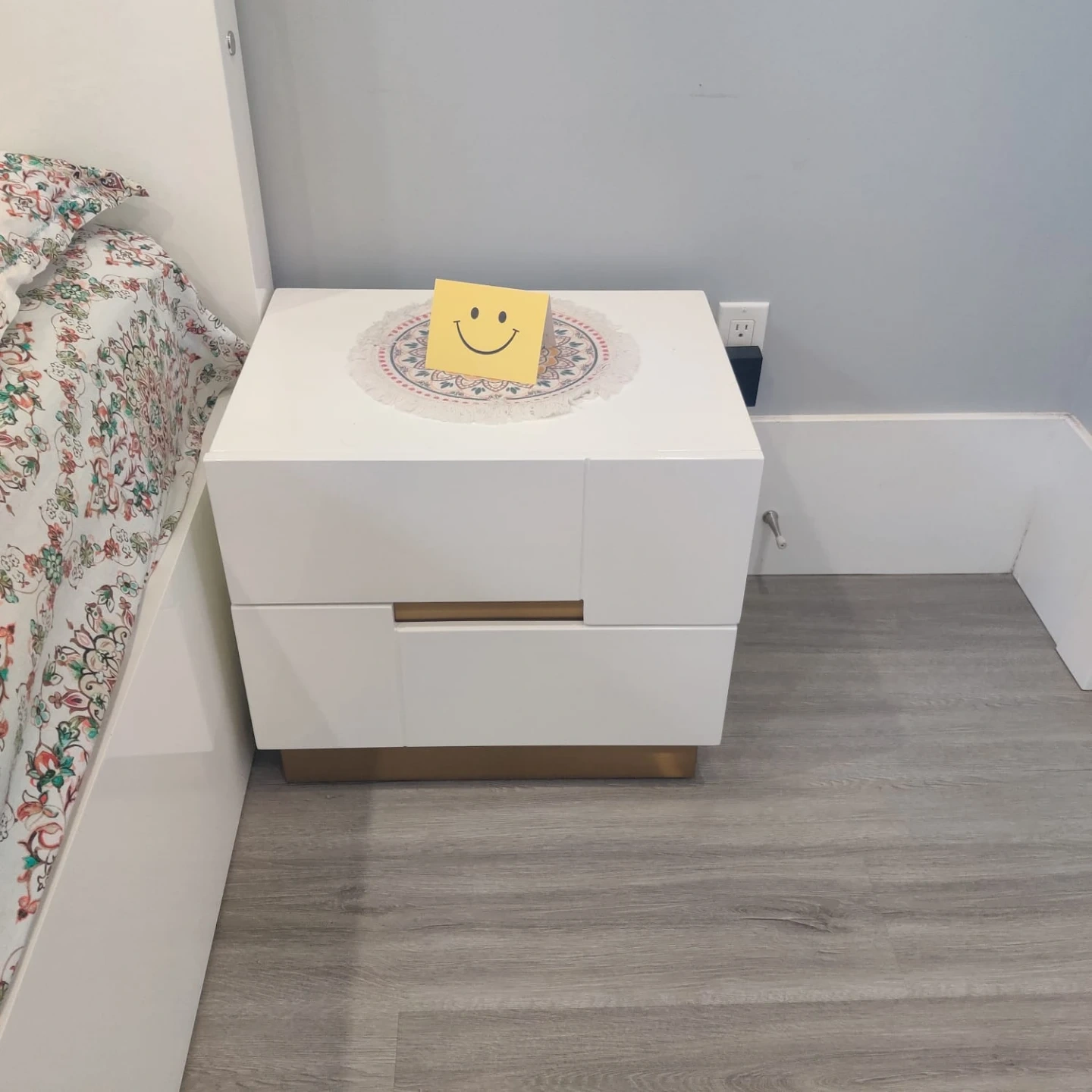 This is a queen-size bed frame with a modern design and convenient built-in storage underneath. It features a sturdy headboard and a lifting mechanism that provides easy access to the storage compartments. The Sealy Hollycourt mattress (from Costco) with medium firmness is also included along with a matching side table.