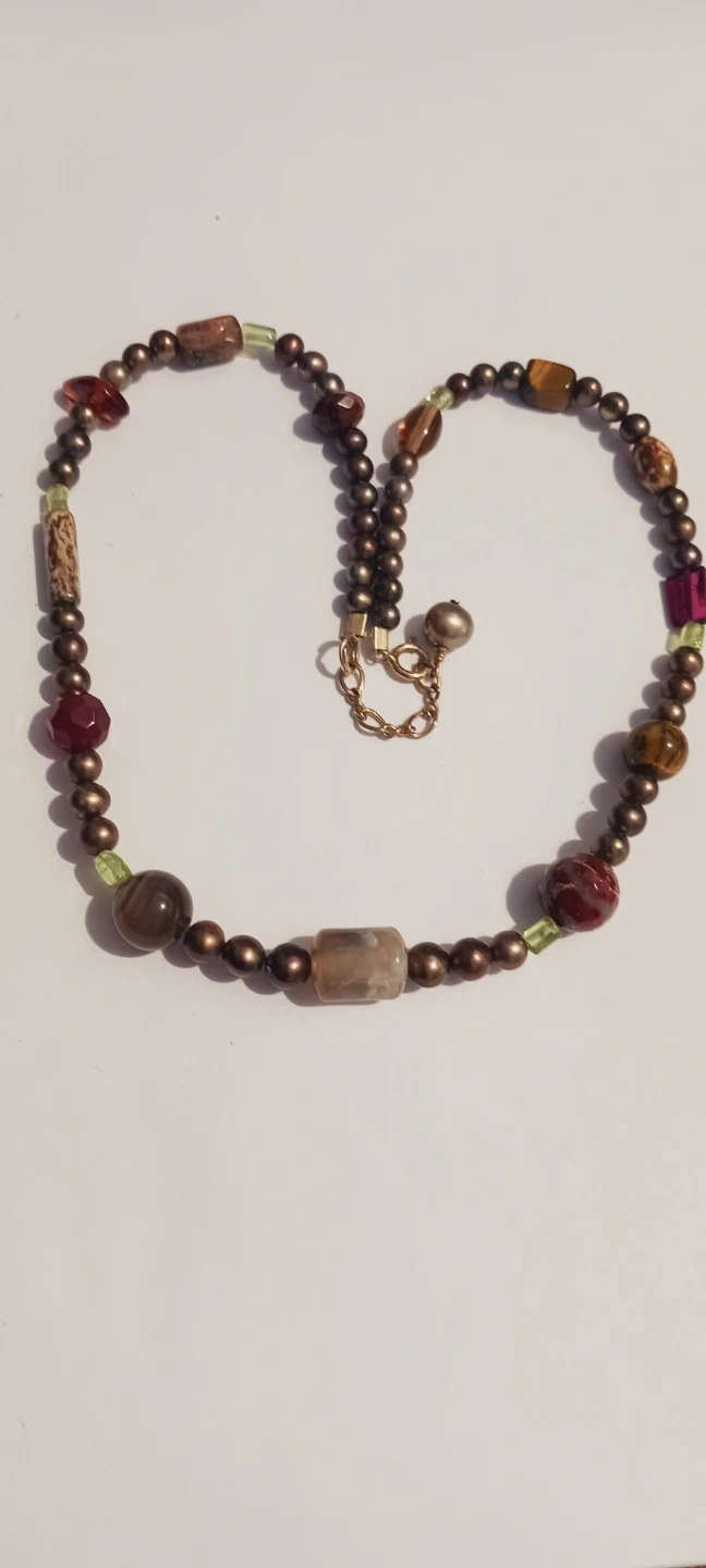 Genuine Freshwater Pearls & Various Gemstones Necklace