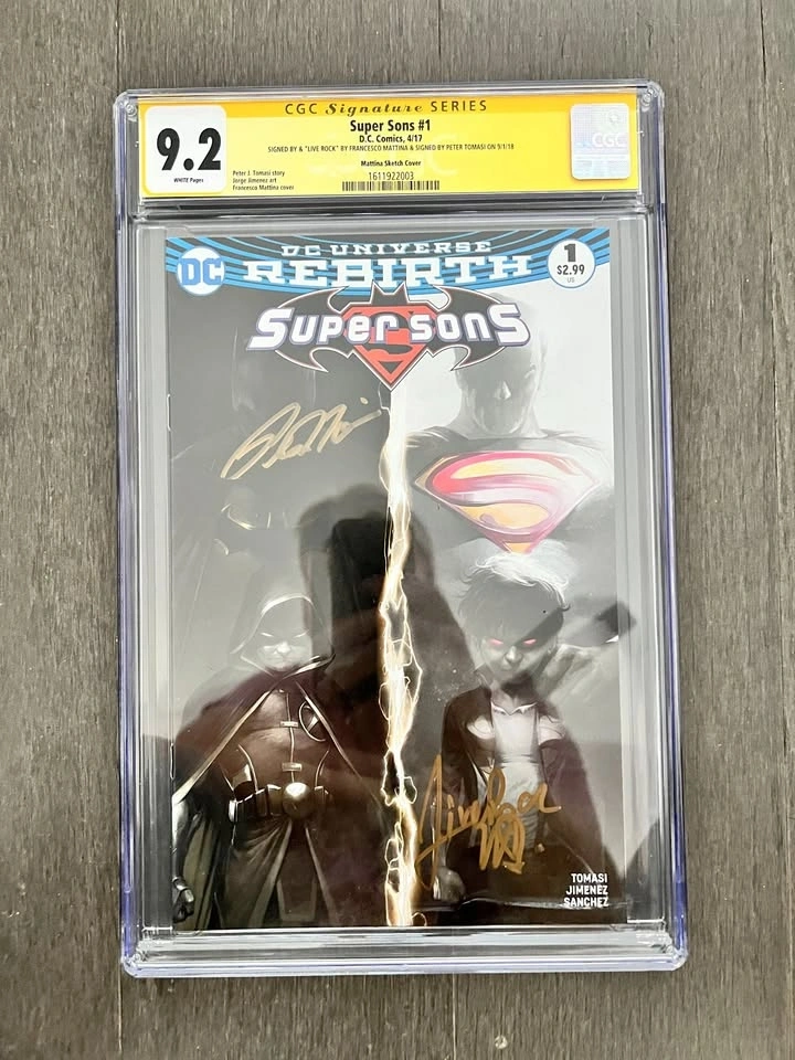Buy & SellSuper Sons Rebirth #1 Francesco Mattina Sketch Variant - CGC 9.2Super Sons Rebirth #1 Francesco Mattina Sketch Variant - CGC 9.2$180CGC graded Super Sons Rebirth #1 Francesco Mattina Sketch Variant. Features signatures from both Mattina and Tomasi. Let me know if you're interested!WHERE TO MEETCheck LocationView MapSELLERverifiedAlexBrier Park600 reviews0 chats·0 favorites·1 viewsSEND CHAT TO SELLERHi Alex! I’m interested in your listing.Hi Alex! I’m interested in your listing.Get the Karrot app to chatSign In to chat