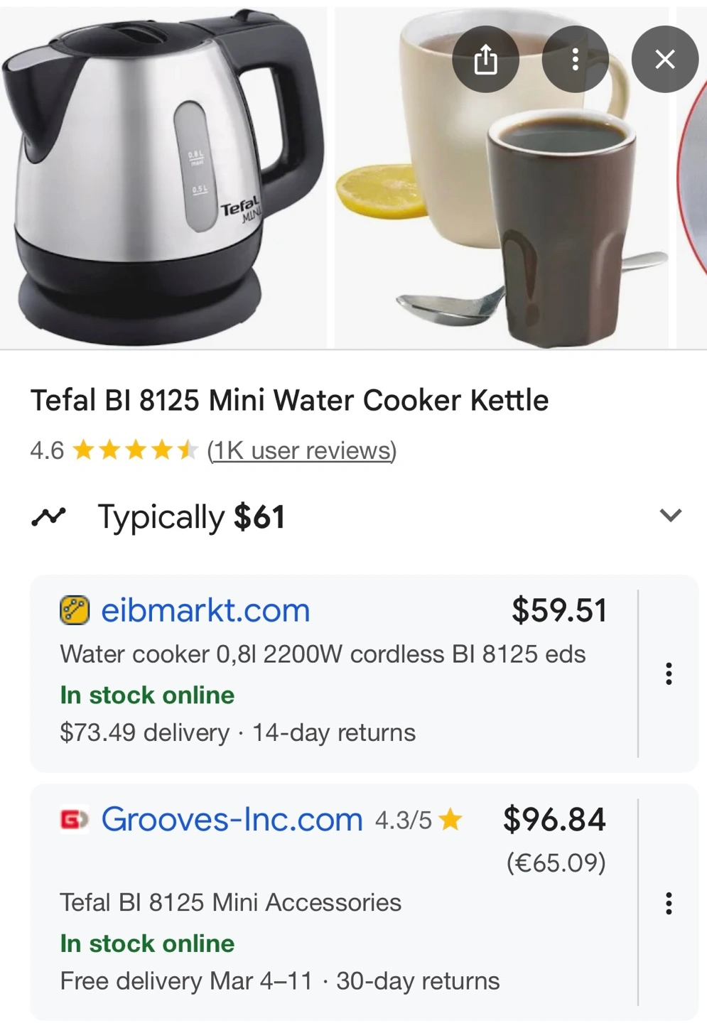 Stainless steel kettle with 0.8L capacity