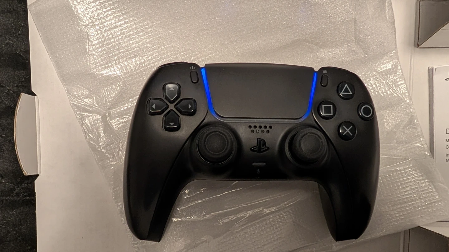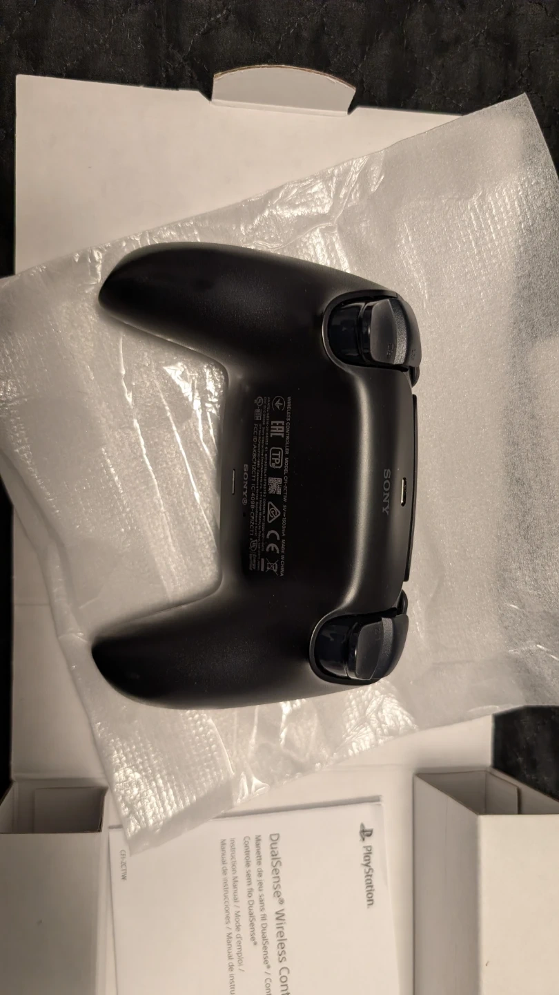 Selling a black Sony PlayStation DualSense wireless controller for PS5. Includes original packaging and manuals. It's a fantastic controller for gaming!