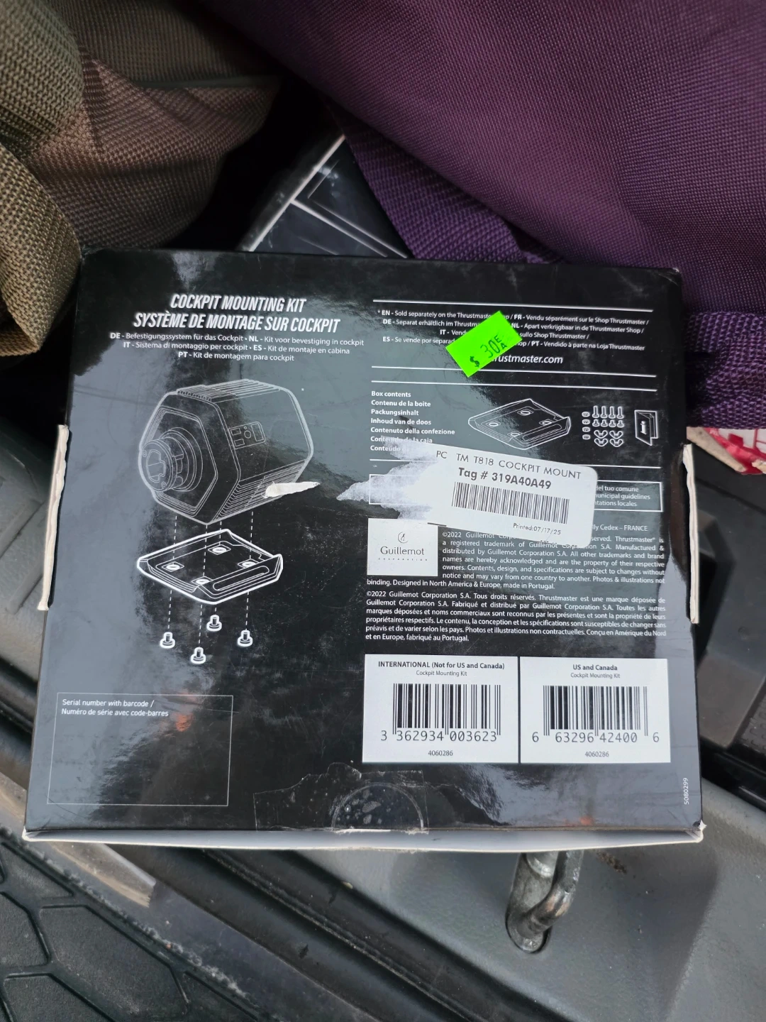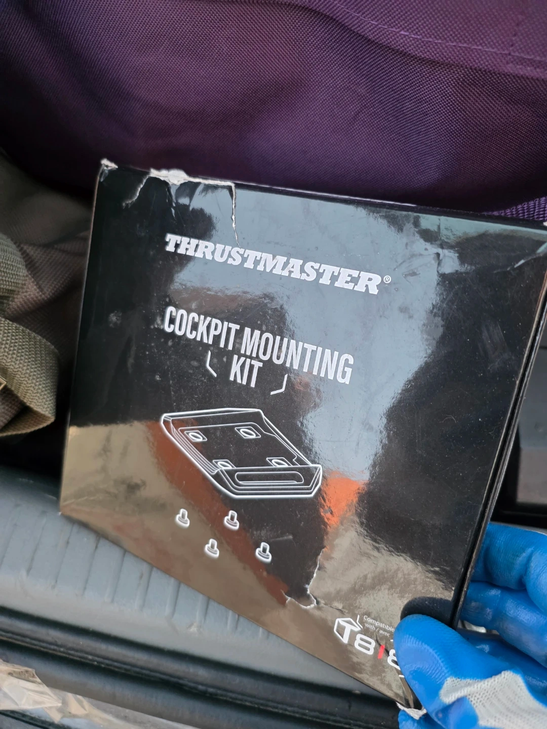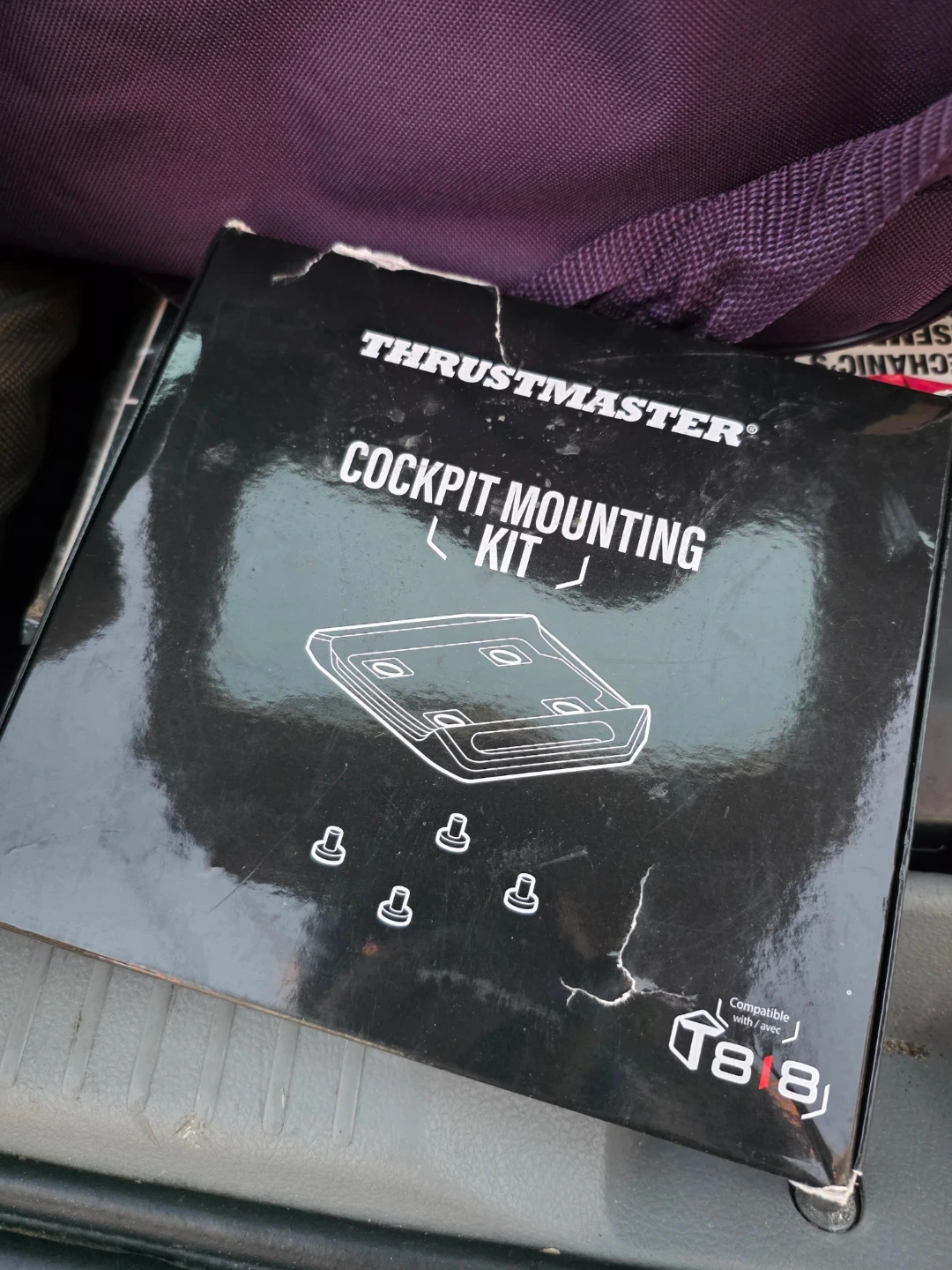 This is a Thrustmaster Cockpit Mounting Kit. It includes the mounting plate and screws. This kit is compatible with the T1818.