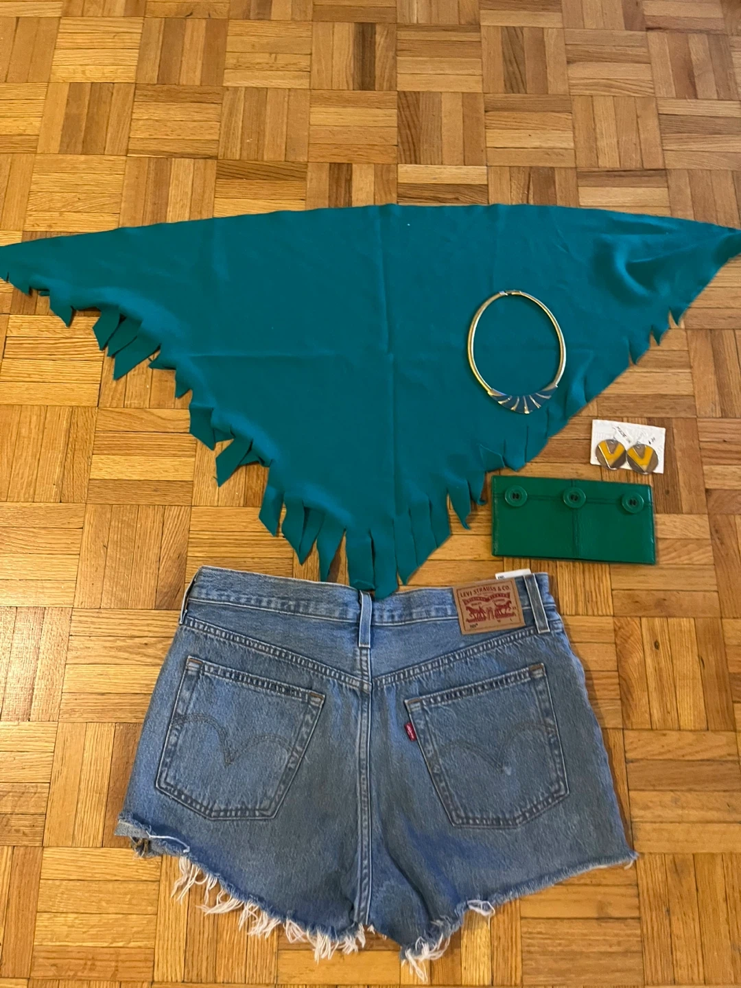 5 PCS SET Levi's Denim Shorts and Teal Poncho with Jewelry Set