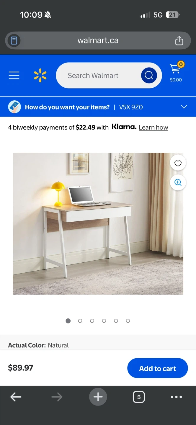 Computer Desk with Built-in USB Ports - Natural Finish