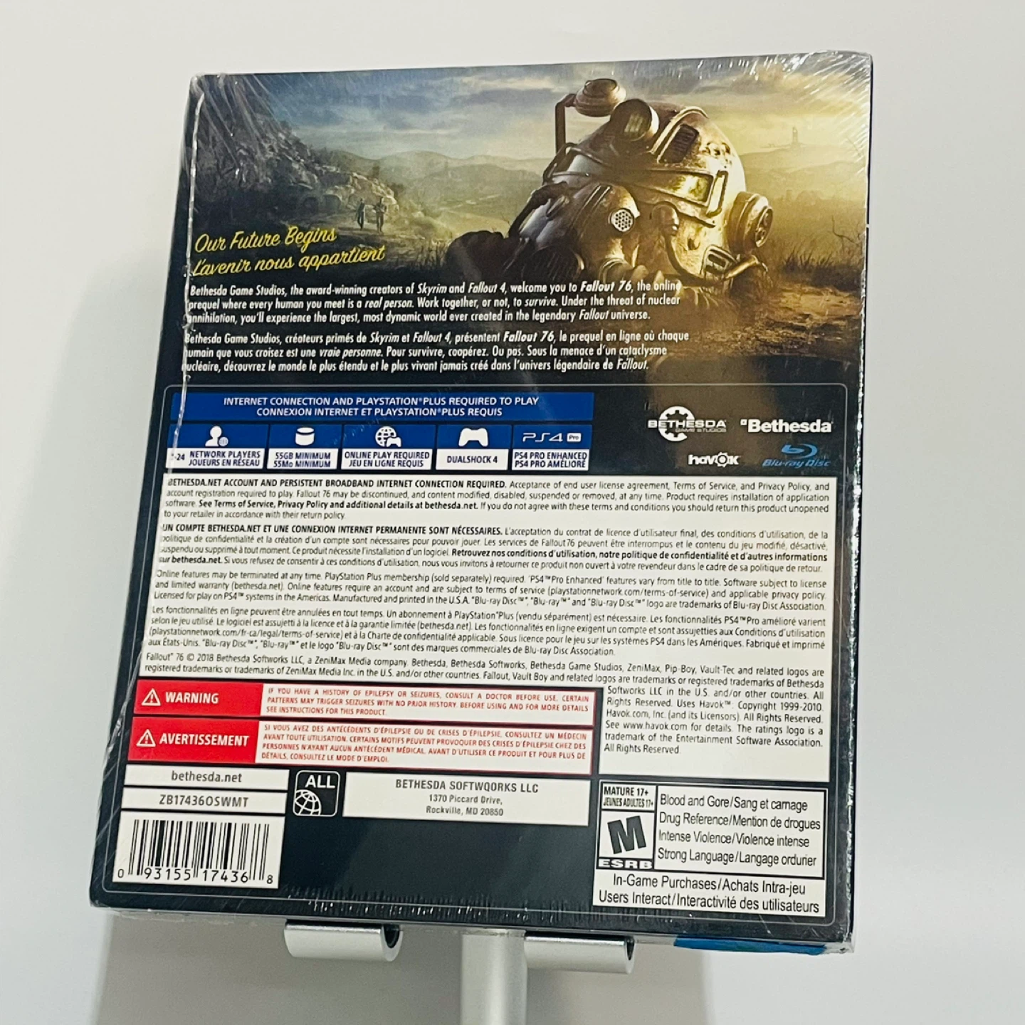 Selling a copy of Fallout 76 for the PS4. It's rated M for Mature 17+ and includes online play requiring an internet connection and PlayStation Plus. Get ready for a post-nuclear adventure!