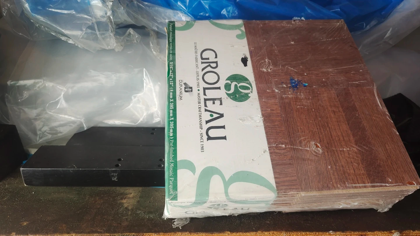 Selling Groleau Red Oak pre-finished mosaic parquetry. Each tile measures 5/16" x 12" x 12" (8 mm x 305 mm x 305 mm). Perfect for adding a touch of elegance to your space