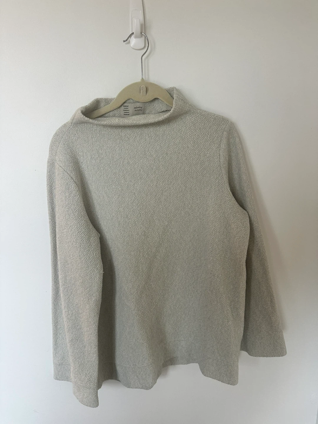 Anthropologie sweater with a mock neck. Textured knit fabric. Machine washable. Great for layering during cooler weather!