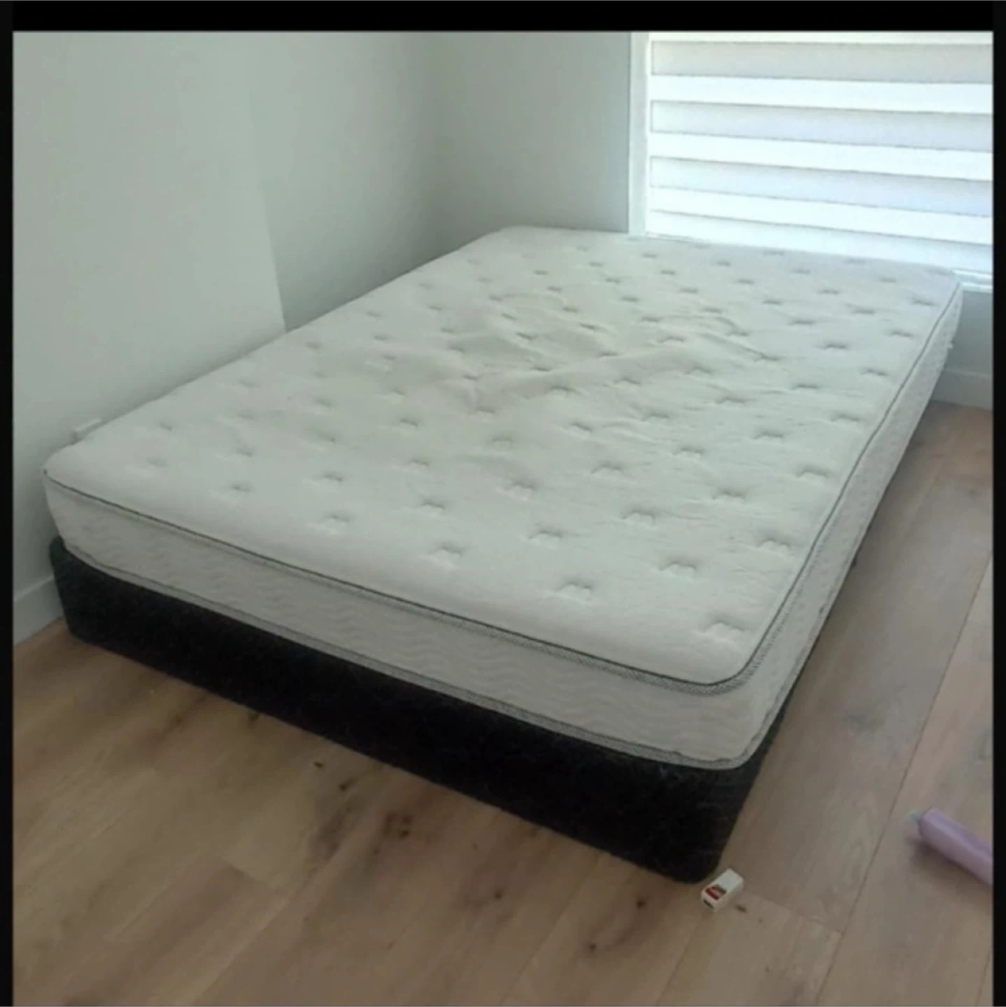 White quilted mattress spring type. Standard queen size. Provides a firm sleeping surface. Perfect for any bedroom!