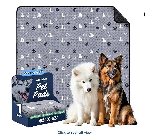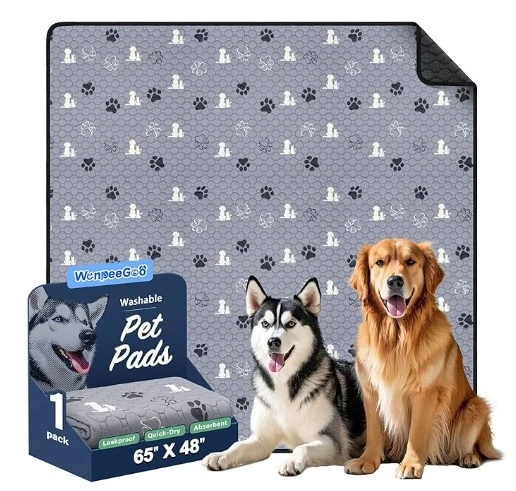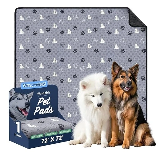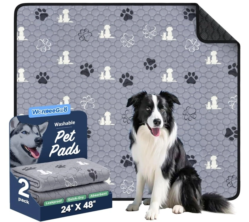 Brand new, unopened Wanpeego washable pee pads in paw print grey. Absorbent reusable training pads with non-slip backing. Great for puppies, dogs, crates, playpens, furniture, and as an extra layer of protection on beds.
