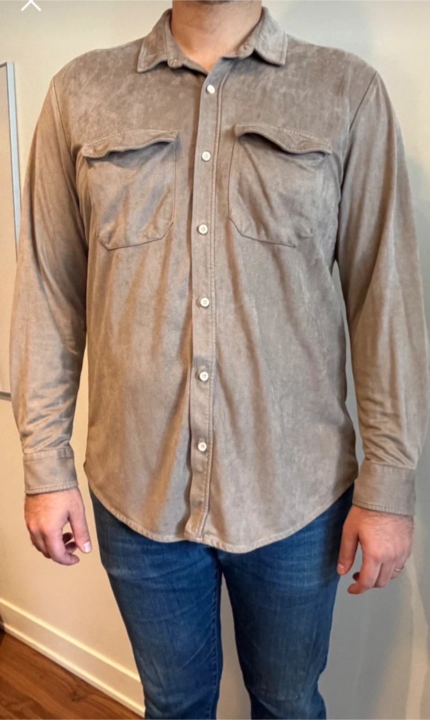 Men's Suede Long Sleeve Button-Up Shirt