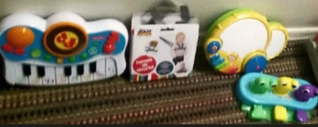 Bundle of musical toys for toddlers. Includes a Fisher-Price DJ Beatbox keyboard with piano keys and animal buttons. Also features other smaller musical instruments. Great for encouraging musical exploration and development. Also New In Box Harness For Toddler Take ALL for 20